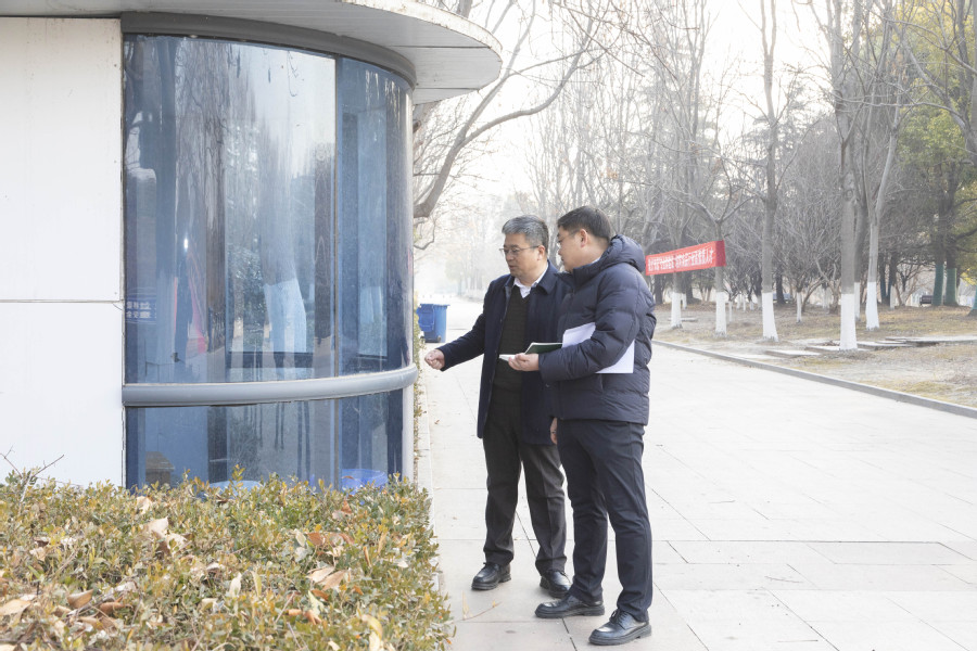 为贯彻落实校园安全工作与服务保障会议精神,扎实做好寒假期间校园安全工作,1月26日上午,副校长张军带领保卫处、教务处、学工处、基建处及后勤服务中心等部门负责人开展2024年寒假校园安全检查工作。