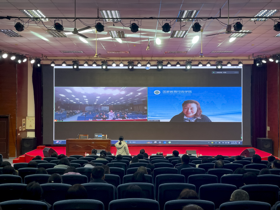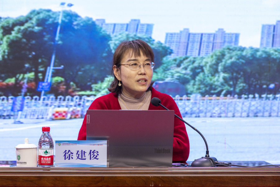 徐建俊作题为《新时期职业教育深化产教融合促进高质量发展的思考与实践》的专题辅导报告。她围绕高质量发展内涵的七点思考,指出高职院校高质量发展内涵重点体现在完善体制机制做实产教融合平台,加强“三教”改革的力度与深度,提升院校治理及信息化能力等方面。她围绕专业设置、产教融合平台、创新人才培养、科教融汇、智慧治理等方面介绍了常州信息职业技术学院产教融合高质量发展的育人实践,为我校提供理论借鉴和前沿启示,以及赋能教育高质量发展的方向。
