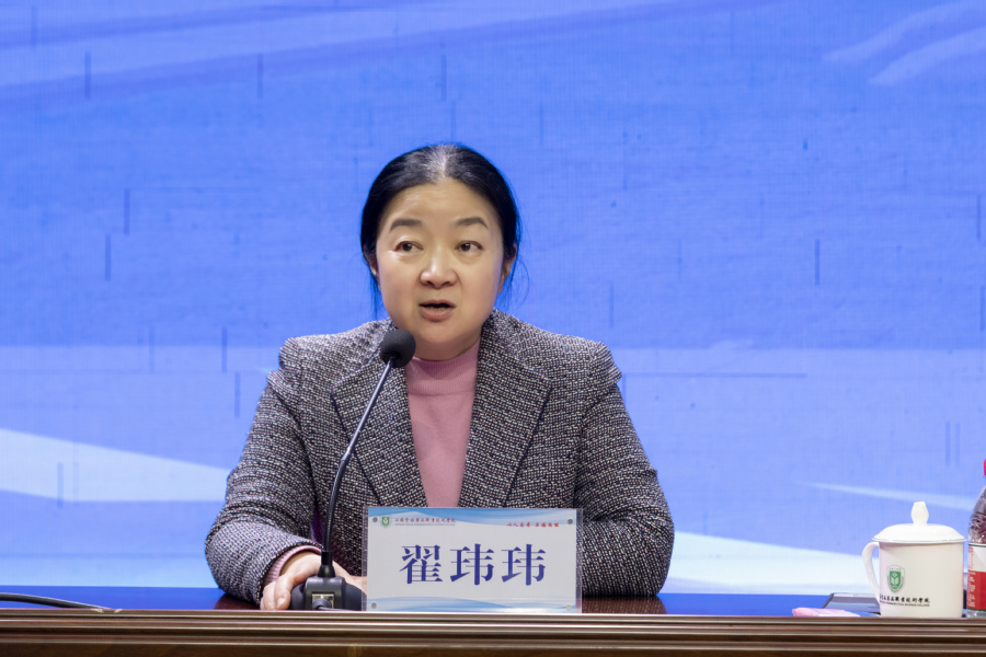 随后,翟玮玮部署新学期工作安排。她首先以“双高”引领成效凸显、教学改革质效显著、治理改革红利释放、重点工作整体跃升四个关键方面,对2023年度学校高质量发展表示了充分的肯定,并提出了不足之处。她指出新学期全体教职工要以立德树人为根本任务,聚焦三大发展战略与目标,根据问题导向、目标导向、成果导向,做到思路清、眼光远、目标明、措施实、成效优,以“有组织+”为工作抓手,加强党的全面领导、促进学生全面成长、提升事业发展质量、推进幸福校园建设,统筹推进学校各项事业高质量发展,以优异成绩迎接中华人民共和国成立75周年。