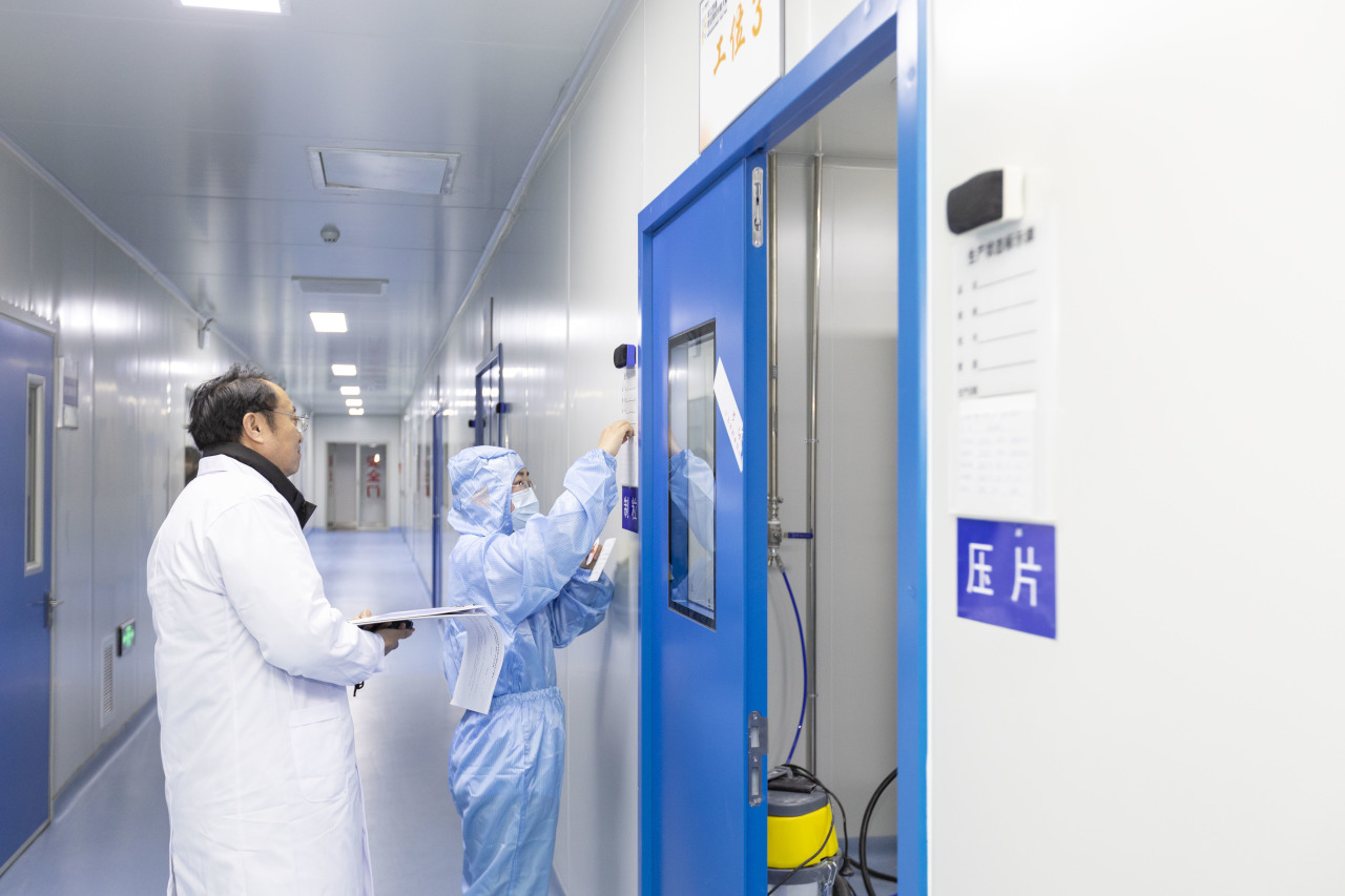 本次大赛中的技能操作模块在我校GMP教学工厂以片剂生产的竞赛形式展现,通过人员净化、流化床制粒、压片、物料管理等内容,重点考察选手的药品规范生产、典型生产设备使用与维护、质量检测技能及职业素养。赛项为团队赛,每个组别由 2 名参赛选手组成。最终江苏食品药品职业技术学院温冰冰、蔡佳,苏州卫生职业技术学院高芷君、张琪获得一等奖。
