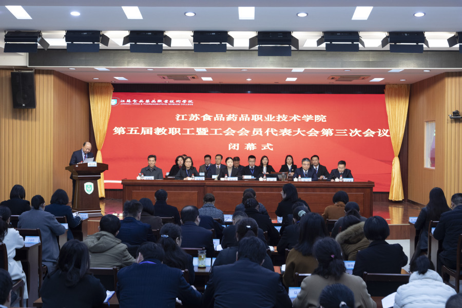 淮安市总工会党组成员、副主席张修和以“三个坚持”对我校工会工作情况进行了点评,他指出,江苏食品药品职业技术学院坚持打造特色办学为目标,在思想引领中彰显作为;坚持以服务教职工为主线,在构建和谐、推动发展中凝聚力量;坚持以加强自身建设为重点,在开拓创新、固本强基中抓实干。张修和希望工会应当紧密团结广大职工,扎实工作,为实现学校高质量跨越发展再立新功。