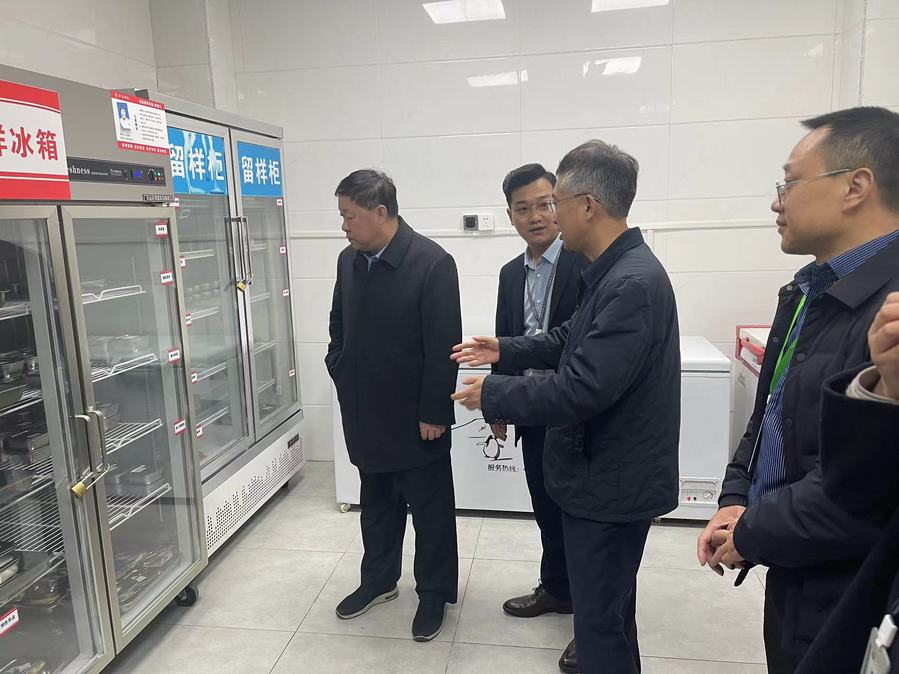 我校副校长张军详细介绍了学生餐厅的日常运营情况,包括食品采购、储存、加工及售卖等各个环节。程国民一行参观了食品库房、留样间和操作加工间等关键区域,实地了解了我校食品安全的保障措施和操作流程。