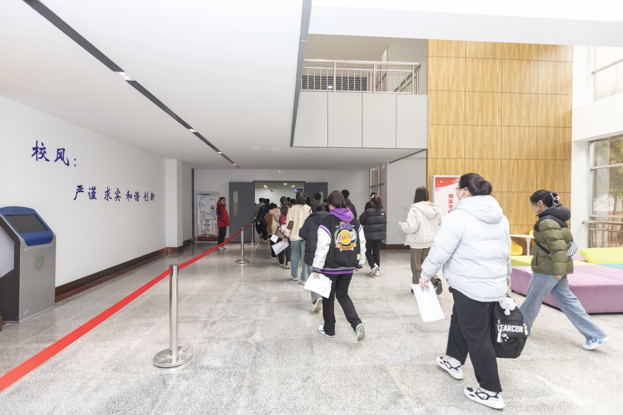 一大早,教学楼前就排起了长龙,考生有序排队,等待进入考场。3月15日下午,我校提前对考生开放考场,以便考生和家长熟悉考场环境。考试当天,学校在C115开辟家长休息区,播放暖场视频;为了方便考生和家长,学校还免费提供了就餐券。