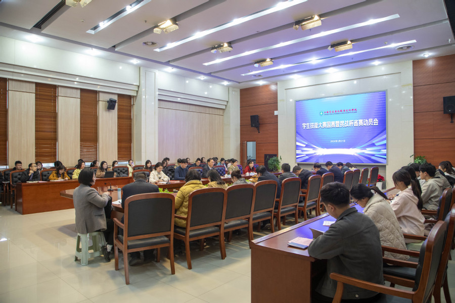 3月21日下午,我校在图书馆多功能厅召开2024年学生技能大赛国赛暨挑战杯省赛动员会。党委书记薛宇作动员讲话,校长翟玮玮主持会议。