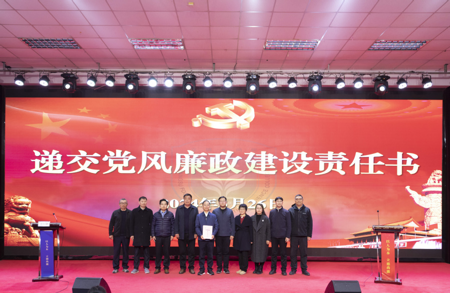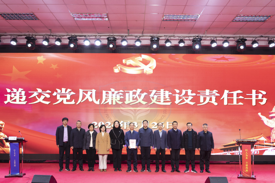 会上组织观看了警示教育专题片《奋力破解独有难题》。学校领导班子成员、二级院部、职能部门负责人分别签订并向党委书记递交了2024年党风廉政建设责任书。纪委书记夏燕萍作依法治校与重点领域专项督查整改工作报告。二级院部和部门负责人代表杨猛、唐慧玲、谢亮分别作表态发言。