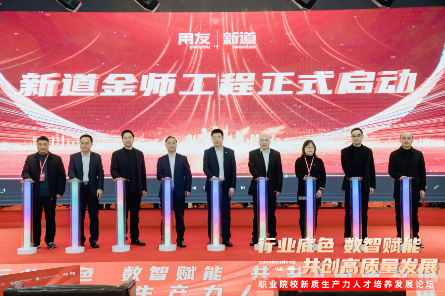 本次论坛由江苏省财经商贸职业教育行业指导委员会财经专业委员会、江苏联合职业技术学院会计专业建设指导委员会、中国中小企业协会数智化专业委员会指导,新道科技股份有限公司主办,江苏食品药品职业技术学院、江苏财经职业技术学院、江苏经贸职业技术学院、江苏省徐州财经高等职业技术学校承办,用友网络科技股份有限公司、用友职业教育集团协办。会议聚焦“行业底色 数智赋能 共创高质量发展”,来自江苏地区的职业院校领导、行业专家等200余位嘉宾共聚一堂,共同探讨职业院校新质生产力人才培养的新模式、新路径,共同推动院校教育的高质量发展。