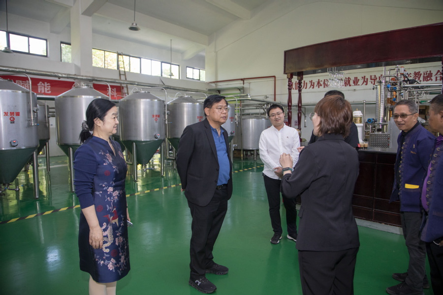 会后,扎图里·通普伦一行参观了学校啤酒车间、黄酒车间、烘焙车间、中医养生馆、百草园等实训基地,充分感受学校的办学特色与文化特色。