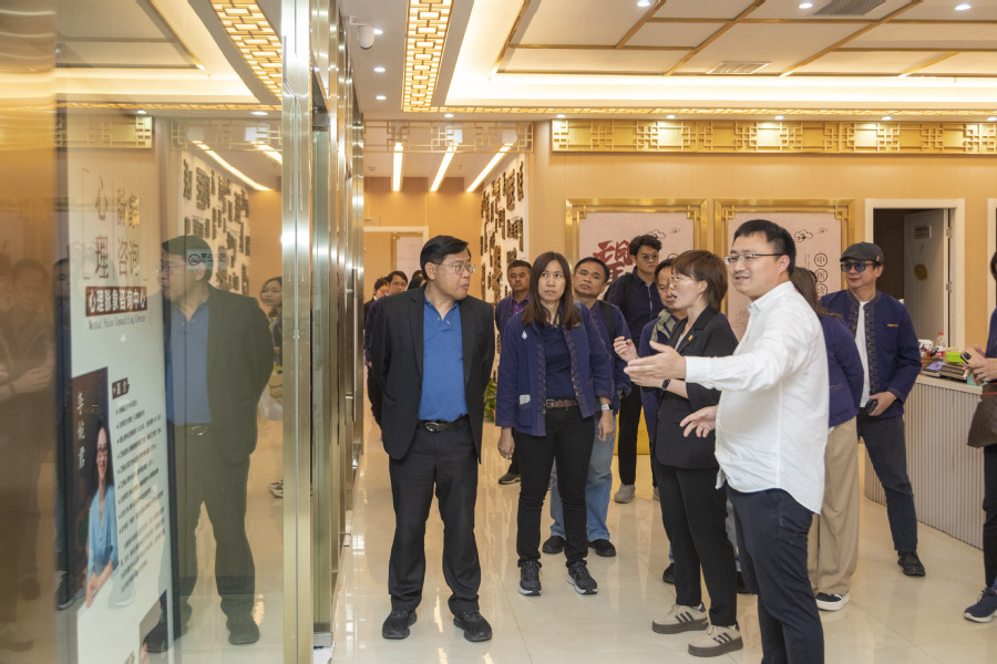 扎图里·通普伦校长代表泰国兰纳皇家理工大学对我校的热情接待表示诚挚的感谢,他现场观看了中药学经世学堂短期培训班学生在我校学习和生活的视频,并再次表达感谢。他表示非常高兴能够支持和推动与我校的合作,使这一项目顺利实施并取得了进展,期待两校在学生交流、专业合作等领域继续深入开展交流与合作。