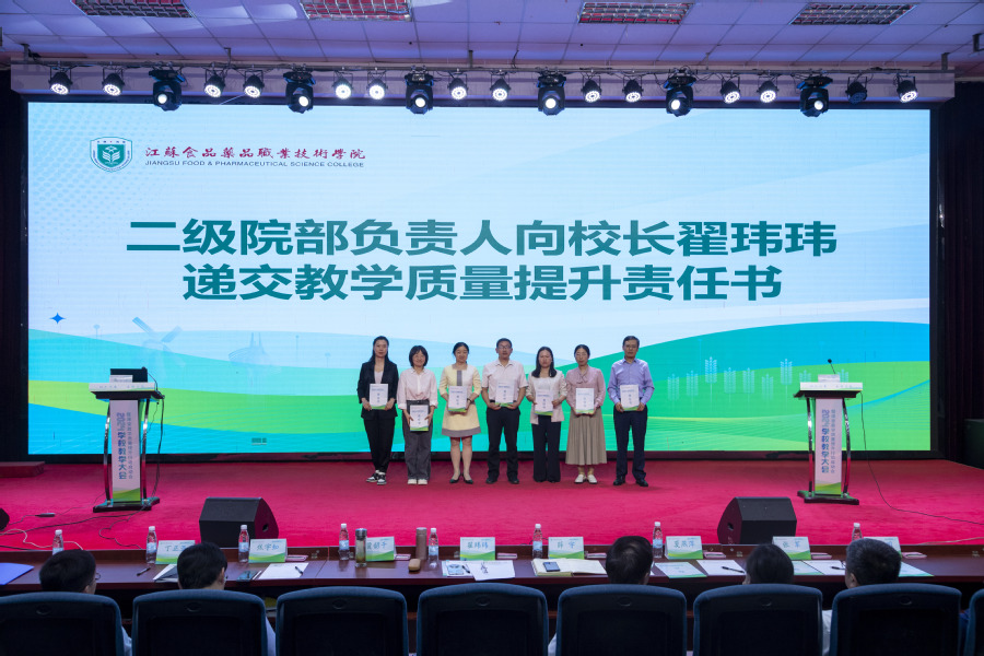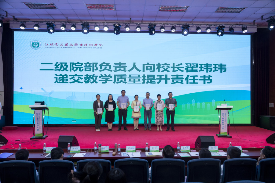 会上,各二级院部负责人向翟玮玮校长递交了教学质量提升责任书,食品学院院长李琴、学校教学督导倪秀芹及基础部教师王开帅代表教学部门作表态发言。校领导为2023年以来获得教学类项目国赛及省赛一等奖的34支团队颁发荣誉证书。