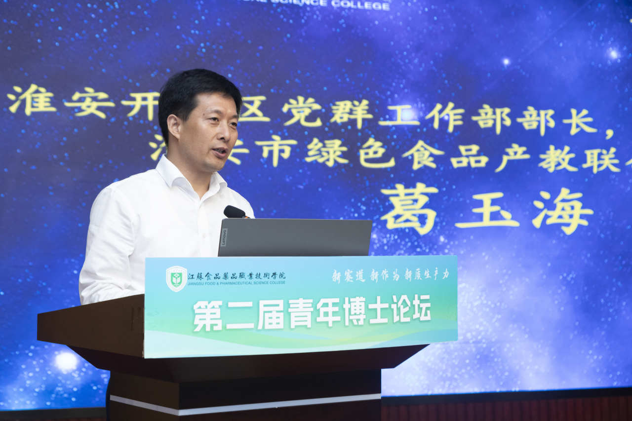 5月25日至26日,江苏食品药品职业技术学院第二届青年博士论坛在江苏淮安成功举办,本届论坛以“新赛道、新作为、新质生产力”为主题。淮安经济技术开发区党工委委员、党群工作部部长,科教产业发展办公室党组书记、主任,淮安市绿色食品产教联合体常务副理事长葛玉海,淮安市高层次人才发展中心副主任傅苠鸣,江苏食品药品职业技术学院校长翟玮玮出席论坛,论坛由江苏食品药品职业技术学院党委委员、副校长贾韶千主持。