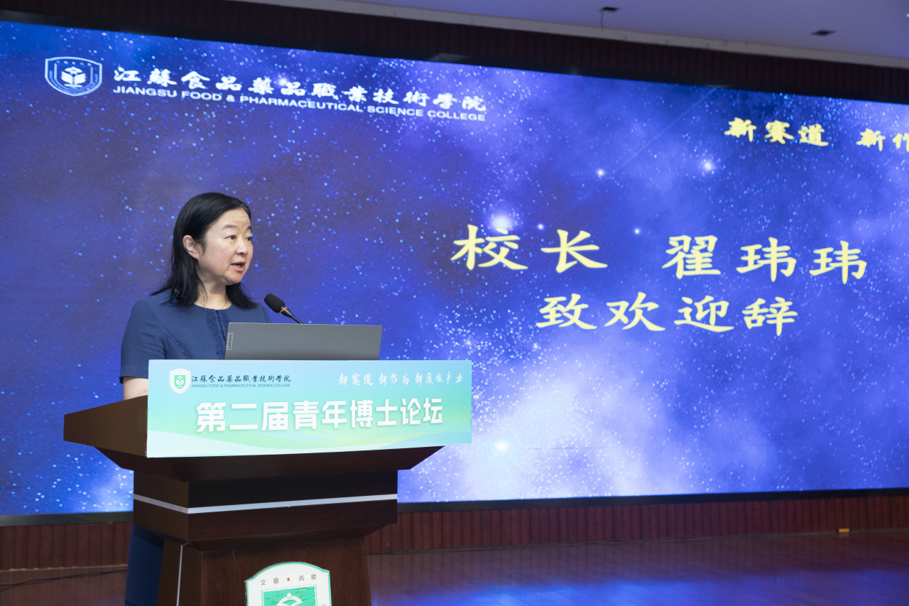 本次论坛由主论坛、分论坛和校内外参观考察三部分组成。在主论坛开幕式上,校长翟玮玮首先致欢迎辞,她对参加本次论坛的各位领导、博士、专家学者表示最热烈的欢迎和最诚挚的感谢。翟校长表示,新时代,新征程,新使命,全体江苏食品药品职业技术学院人正持之以恒为建成富有“行业典范、中国特色和世界影响”的一流食品药品类职业技术本科大学的目标奋斗,学校对优秀人才的需求比以往任何时候都更为迫切,期待海内外优秀人才加盟学校,赋能学校发展,共攀学术高峰,共同创造学校美好明天。