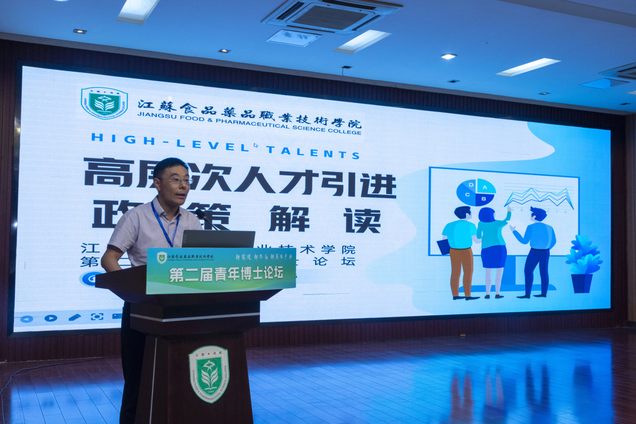 贾韶千向大家介绍了学校的发展历程、院部和专业设置、师资队伍、科研与社会服务、国际交流与合作、发展愿景等基本情况,并向博士们发出引才邀约,希望大家能够在苏食院这片创业热土上尽情发挥聪明才智,实现学术梦想和人生价值。