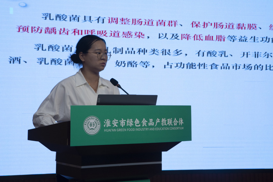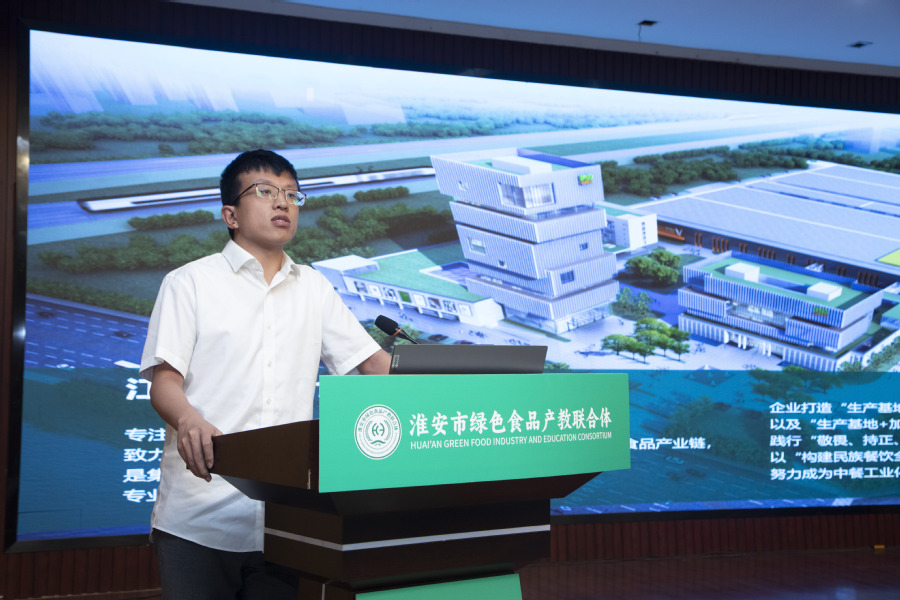 有需求就会有供给,供给满足了需求,才能实现市场的良性运转。联合体成员院校在产学研合作中也积累了丰富的成果,为了有针对性地满足企业技术需求,实现技术成果的转化应用,服务淮安市绿色食品产业发展,淮阴工学院、江苏财经职业技术学院和江苏食品药品职业技术学院代表联合体院校依次上台进行技术供给成果路演。