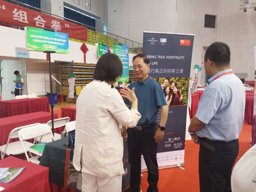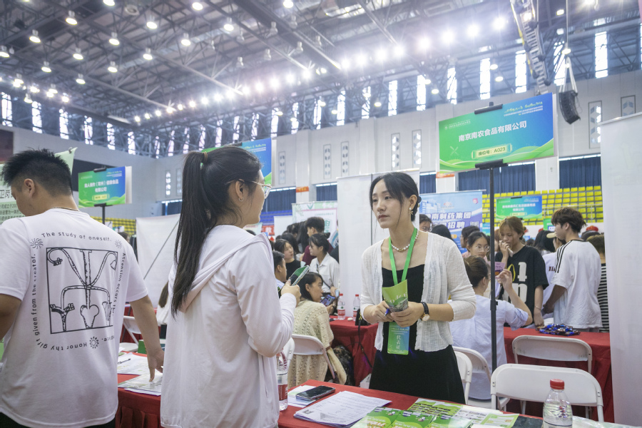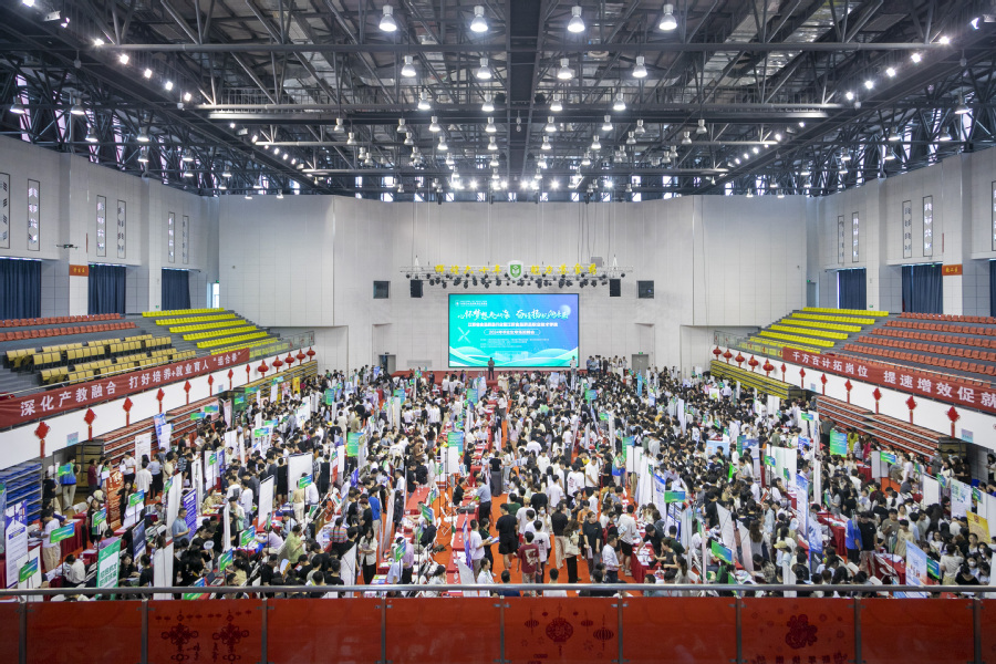 本次招聘会共吸引亿滋食品、鲁南制药、正大天晴药业、全亿健康、京东方、鹏鼎控股、中天钢铁、沙钢集团等国内近300家行业领先企业参会,为毕业生提供就业岗位万余个,涵盖食品、生物医药与大健康、数字经济、智能制造等行业。为助力毕业生提升就业能力和了解就业政策,招聘会现场还设置了就业指导、生涯规划、政策宣传、AI简历优化、简历打印等公共服务区。