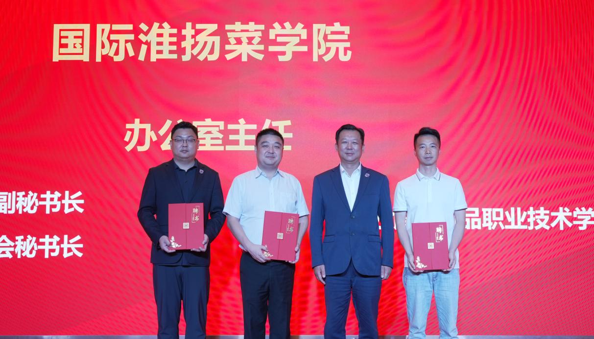 世界中餐业联合会会长邢颖宣读国际淮扬菜学院理事会组成人员名单,提名国际淮扬菜学院院长、执行院长、副院长及办公室人员名单并颁发了聘书。