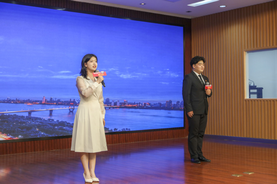 在“信仰铸荣光,榜样赋力量”篇章中,朗诵《红船,从南湖起航》生动描绘了中国共产党从诞生到领导全国人民争取民族独立的辉煌历程,展望中华民族未来的光明前景,歌颂党在建设社会主义现代化国家中的重要作用;《为中华之崛起而读书》以少年周恩来的誓言激励新时代青年书写壮丽人生;《不朽》展示了英烈们的无私奉献精神;主题演讲《赓续“新旅”血脉 “习语淮扬”在行动》聚焦“习语淮扬”理论宣讲团的使命,呼吁青年继承“新安旅行团”的革命精神,为民族复兴而努力。