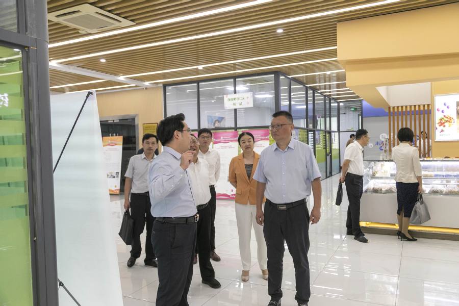 在苏食智药众创空间,产教融合办公室主任、创新创业学院院长於文刚介绍了众创空间功能分区、入驻政策、运营模式、孵化成效以及未来发展规划,重点汇报了“一院一品”区的创新创业实践成果。调研组各位领导和专家对我校众创空间建设运营情况给予高度肯定,认为学校积极响应国家创新驱动发展战略,双创教育有亮点、项目孵化有成效、产教融合有特色。