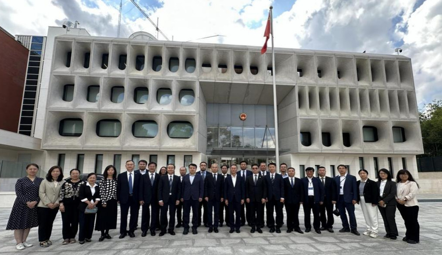 中国驻西班牙大使姚敬会见代表团一行,介绍西班牙教育体系以及中西学生交流情况。我校代表团团长翟玮玮校长介绍了学校办学情况和学校在建郑和学院项目基本情况并交流本次访欧成果,姚敬表示将搭建更多中西民间教育交流平台,不断推动中西教育合作走深走实。