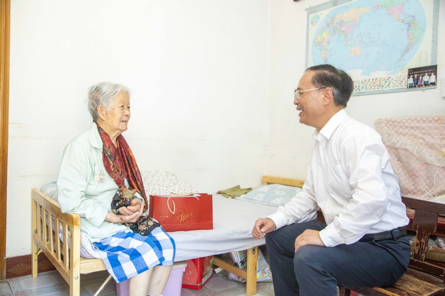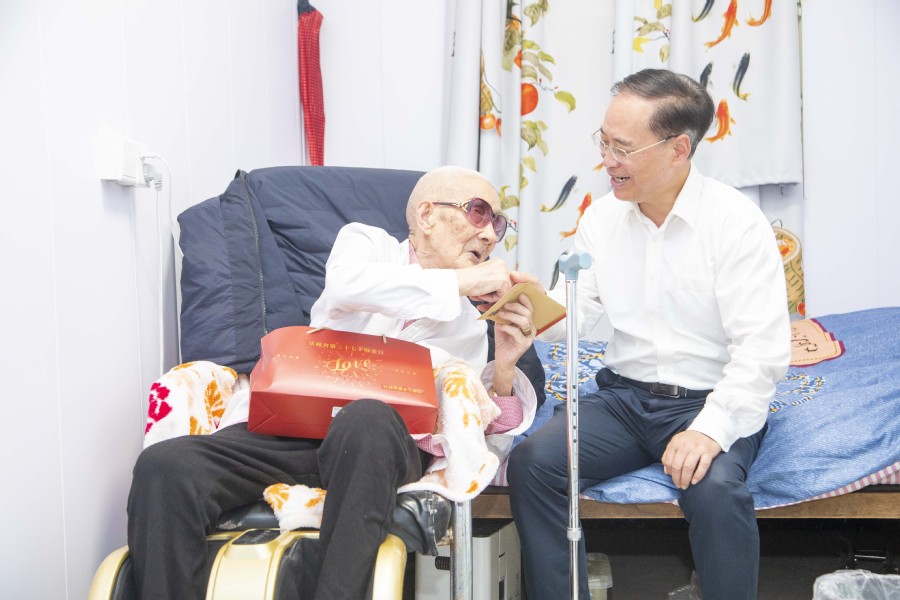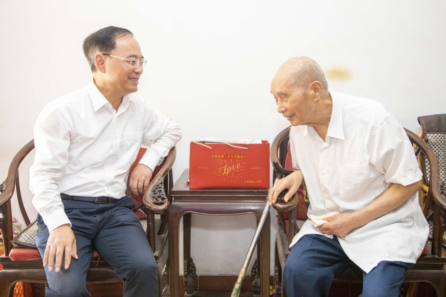 在中华人民共和国成立75周年即将到来之际,9月30日,学校党委书记薛宇,党委委员、组织部长周耀明一行走访慰问了我校离休老干部。薛书记与他们交流谈心,详细了解老同志们的身体状况和生活情况以及是否有困难,简要介绍了近期学校取得的一系列重大事项,向他们送去慰问品和慰问金,感谢他们过去为学校、为社会、为国家做出的贡献,表达了学校新一届党委对老同志们的尊敬、关爱和问候。老同志们简要回顾了历史,充分肯定了学校的发展成就,希望学校越办越好!希望国家越来越强大!老同志们切身感受到了组织的关怀和学校大家庭的温暖。
