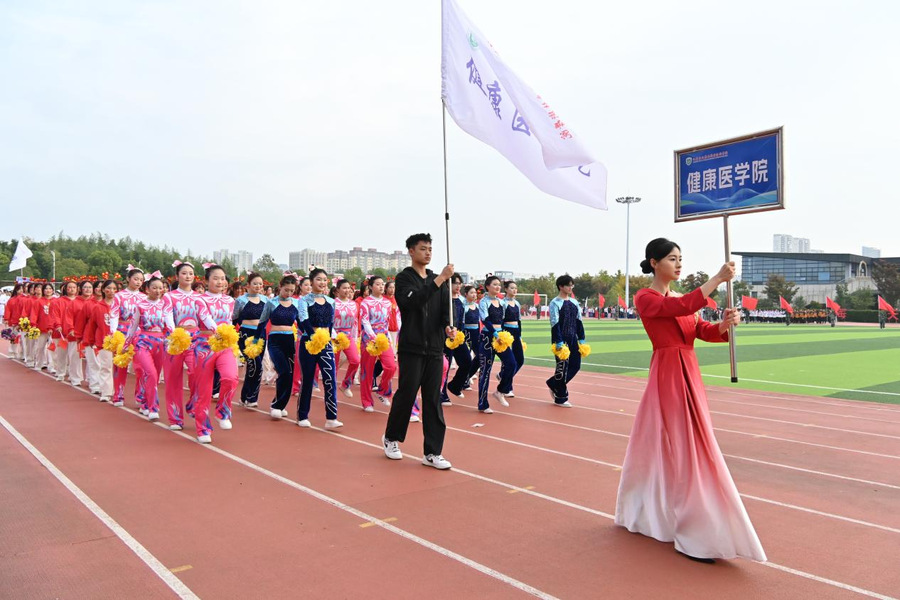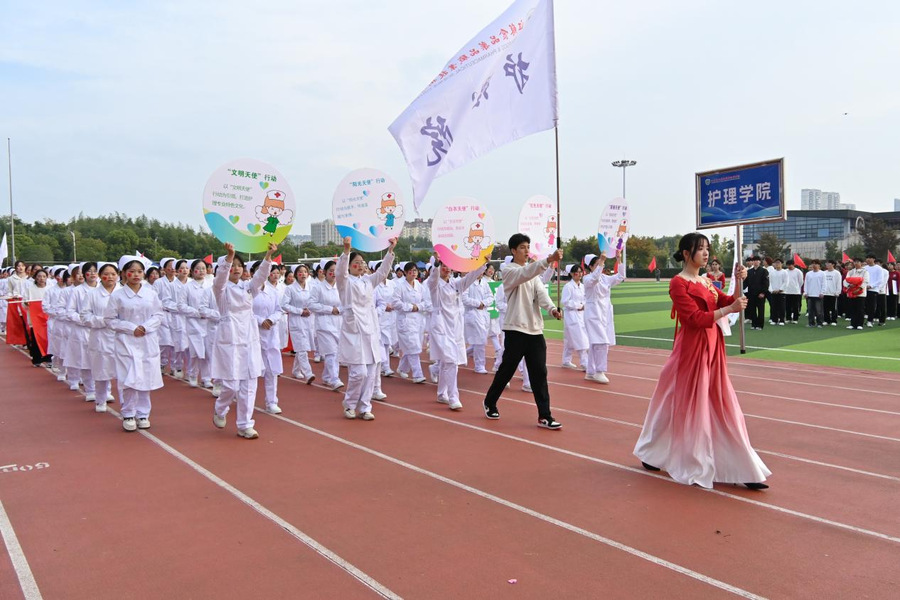 由马克思主义学院、基础教学部、智能制造学院、护理学院、人工智能学院、食品药品研究院等分工会教师代表组成的教师方阵步伐矫健,神采奕奕地向我们走来,每一步都踏出了对教育事业的热爱与执着,每一声口号都回响着对学生健康成长的深切关怀。