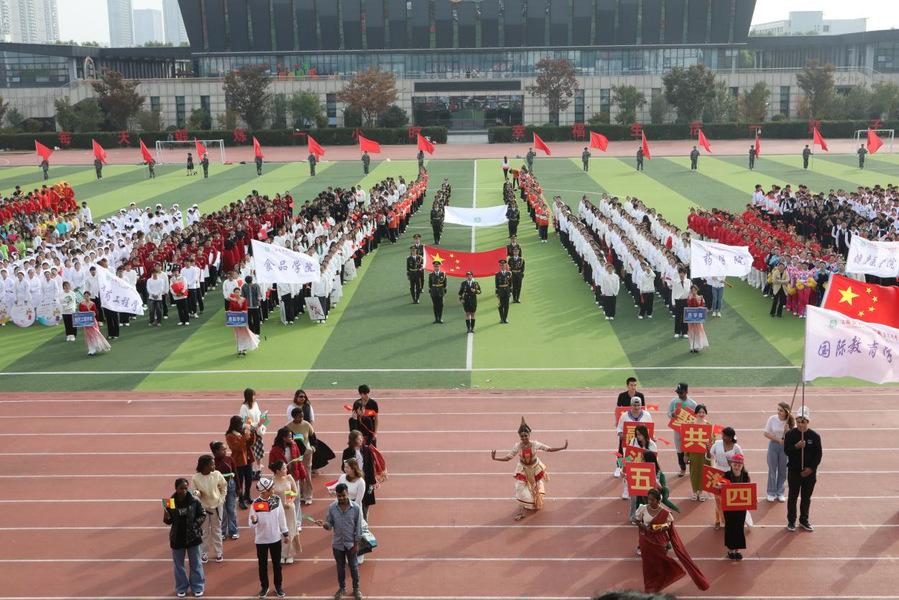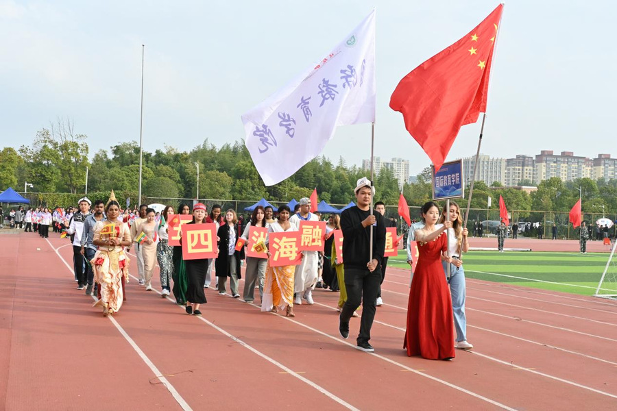 由俄罗斯、塔吉克斯坦、摩洛哥、孟加拉、印度尼西亚、巴基斯坦、卢旺达等11个国家的留学生组成的国际教育学院代表队手持着各自国家的国旗向我们走来。他们用青春诠释着梦想,始终践行着我们身处同一个世界,拥有同一个梦想。他们用热情与激情展示团队精神,浇灌“一带一路”友谊之花。