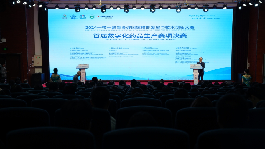 贾韶千宣布2024一带一路暨金砖国家技能发展与技术创新大赛首届数字化药品生产决赛正式开赛。让我们共同期待这场技能与创新的盛宴,期待参赛选手们的精彩表现!