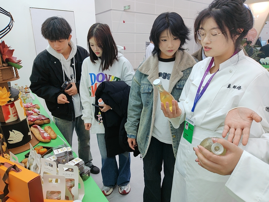 ▲我校研发的养生饮品、艺术面包及特色酒品