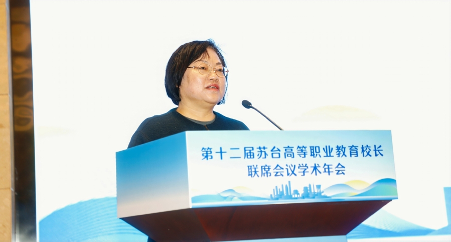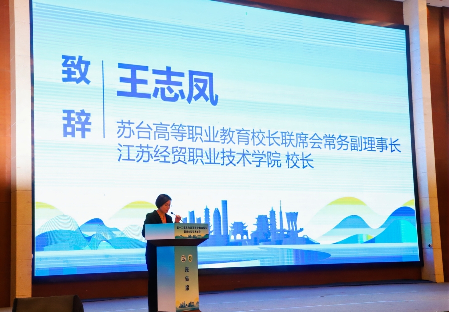 苏台高等职业教育校长联席会常务副理事长、江苏经贸职业技术学院校长王志凤致辞