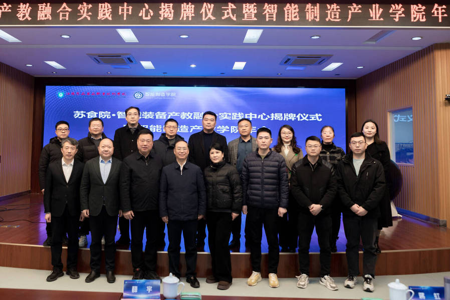 活动尾声,全体与会人员合影留念。最后,嘉宾们一同参观智能装备产教融合实践中心与智能制造产业学院。