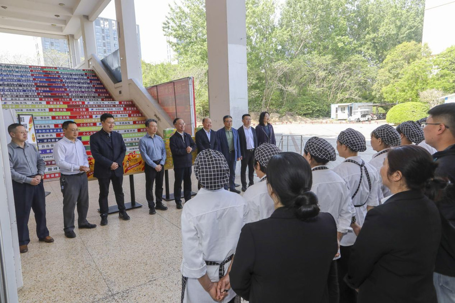 薛宇书记带队慰问了学生餐厅、维修值班室、监控中心等在岗工作人员。他指出,让师生吃得放心、称心、暖心是提高师生幸福指数的重要指标,后勤、保卫是师生正常工作生活、校园安全的重要保障,请大家继续保持高度责任感,做好值班值守工作,努力打造“健康校园”“安全校园”“幸福校园”。