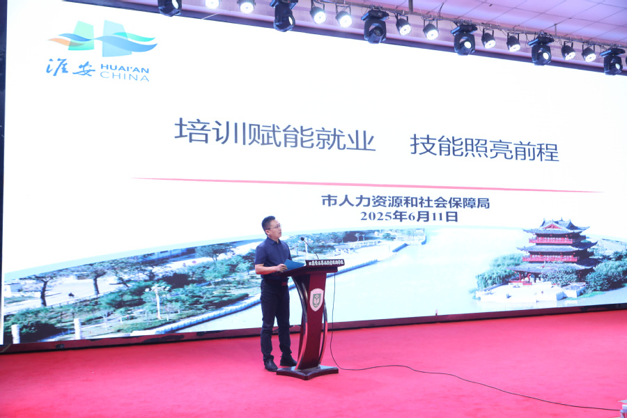 6月11日下午,2025年“淮安工人大思政课”暨“劳模工匠进校园”全国示范宣讲活动在我校隆重举行。活动由江苏省总工会主办,淮安市委宣传部、市总工会、市教育局和我校共同承办。江苏省总工会宣网部部长景月琴,淮安市总工会党组书记、副主席尹树文,副主席张长青,我校党委书记薛宇、副校长贾韶千出席活动。