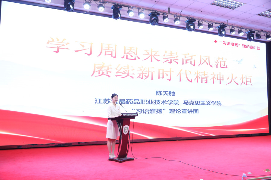 在“理论润心”环节,我校教师陈天驰作题为“学习周恩来崇高风范 赓续新时代精神火炬”的报告。陈老师从周恩来总理“不忘初心 坚守信仰”讲起,回顾周总理信念坚定、为民服务的一生,并勉励同学们学习周恩来崇高风范,以初心如磐锚定人生航向,将“小我”融入“大我”,以信仰如炬点燃奋斗激情,以专业技能为楫,以报国志向为帆,在新时代的激流中奋力划桨。