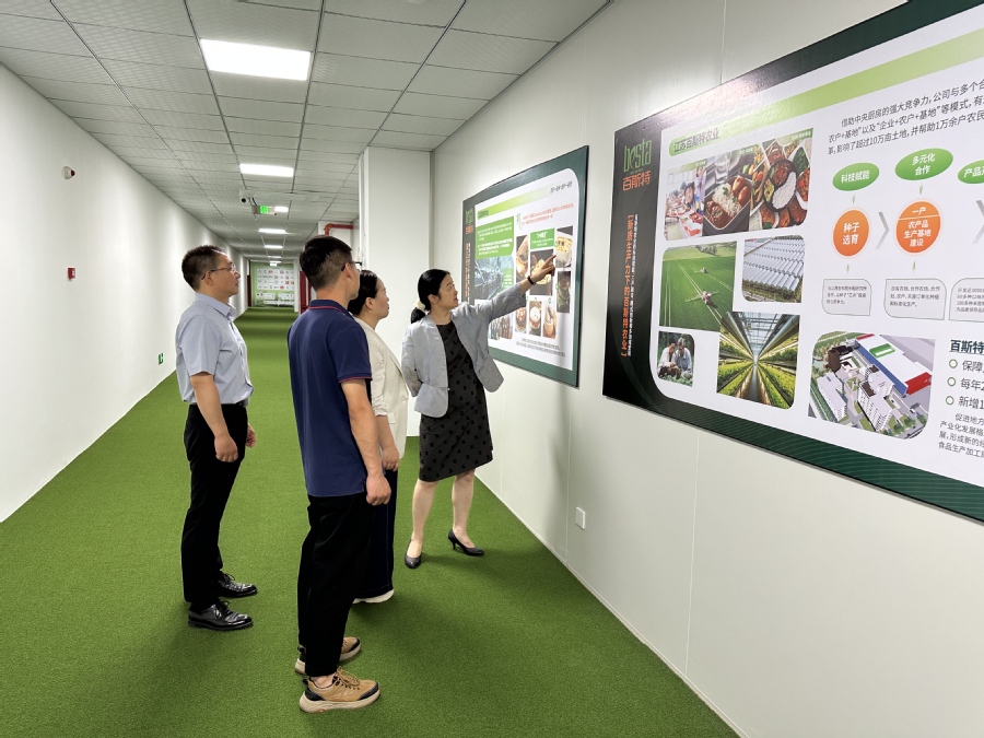 调研组实地考察了百斯特二期新工厂,参观了智能化生产线,了解了智能升级背景下企业对食品智能生产运维、质量检测技术等复合型人才的迫切需求。企业介绍了“生产基地+中央厨房+餐饮门店”“生产基地+加工企业+商超销售”的创新业务模式。校企双方就定向人才培养模式探索、实习就业基地等方面达成合作共识。翟玮玮校长表示,双方作为淮安市绿色食品产教联合体成员,将进一步加强合作,形成校企合作育人模式的新典范。随后,调研组参观了江苏百斯特农业发展有限公司。