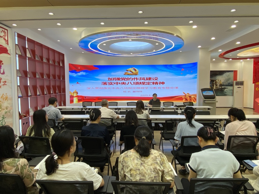翟玮玮校长强调,全体党员要贯彻落实中央八项规定精神,认真学习习近平总书记关于作风建设的重要论述,深刻认识加强党的作风建设的重要意义。要在学思践悟上下功夫,做到知行合一,将学习成果转化为实践成果,切实发挥党员示范引领作用,持续推动学院党建、教学、科研、学生管理等工作走在前列,为学校“双高计划”建设和高质量发展作出新的更大贡献。