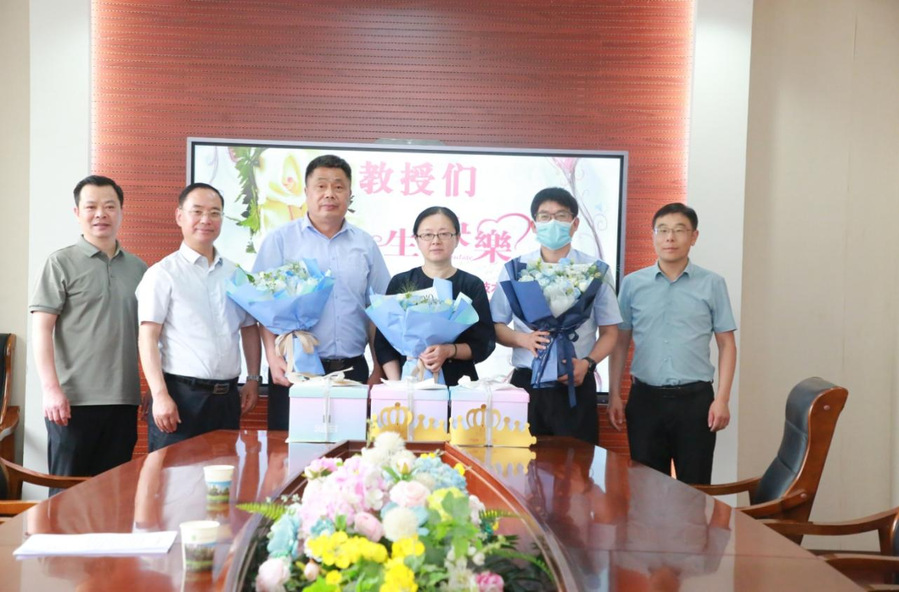 6月27日,党委书记薛宇为焦宇知、罗建光、许韧三位教授举办生日会,代表学校向他们致以诚挚的生日祝福,并亲手送上寓意美好的鲜花与生日蛋糕。