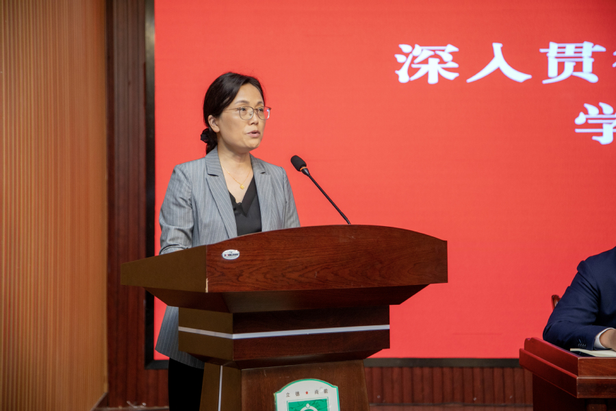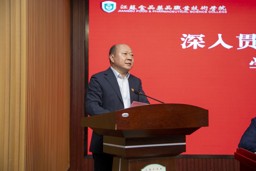 会上,制药工程学院党总支书记朱劲松、马克思主义学院党总支书记李乐霞、洪泽湖产业学院直属党支部书记杨建、健康医学院党总支副书记梁琨琳作为二级党组织代表进行了交流发言。