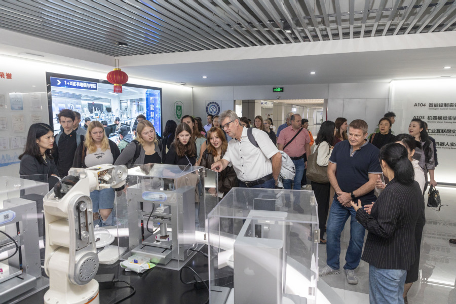 里昂·斯文·克劳舍一行还参观了智能制造产业学院、烘焙车间、啤酒生产车间、食品药品科技馆等教学实践场所,品尝了学校生产的咖啡、糕点和啤酒。