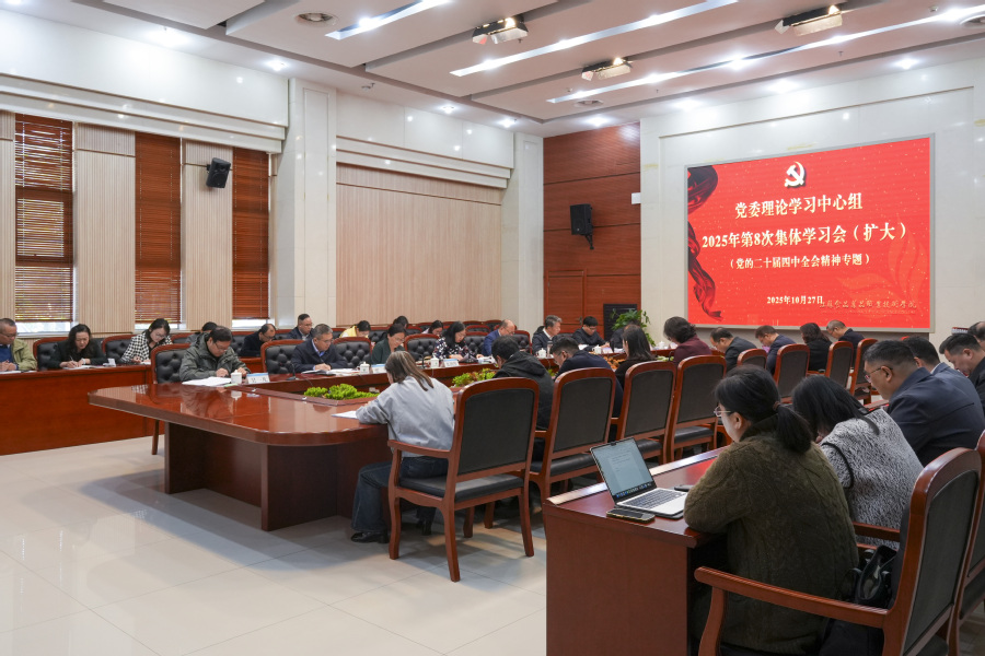 10月27日上午,学校党委理论学习中心组在图书馆多功能厅召开学习扩大会,专题学习党的二十届四中全会精神。校党委书记、校长翟玮玮主持会议。