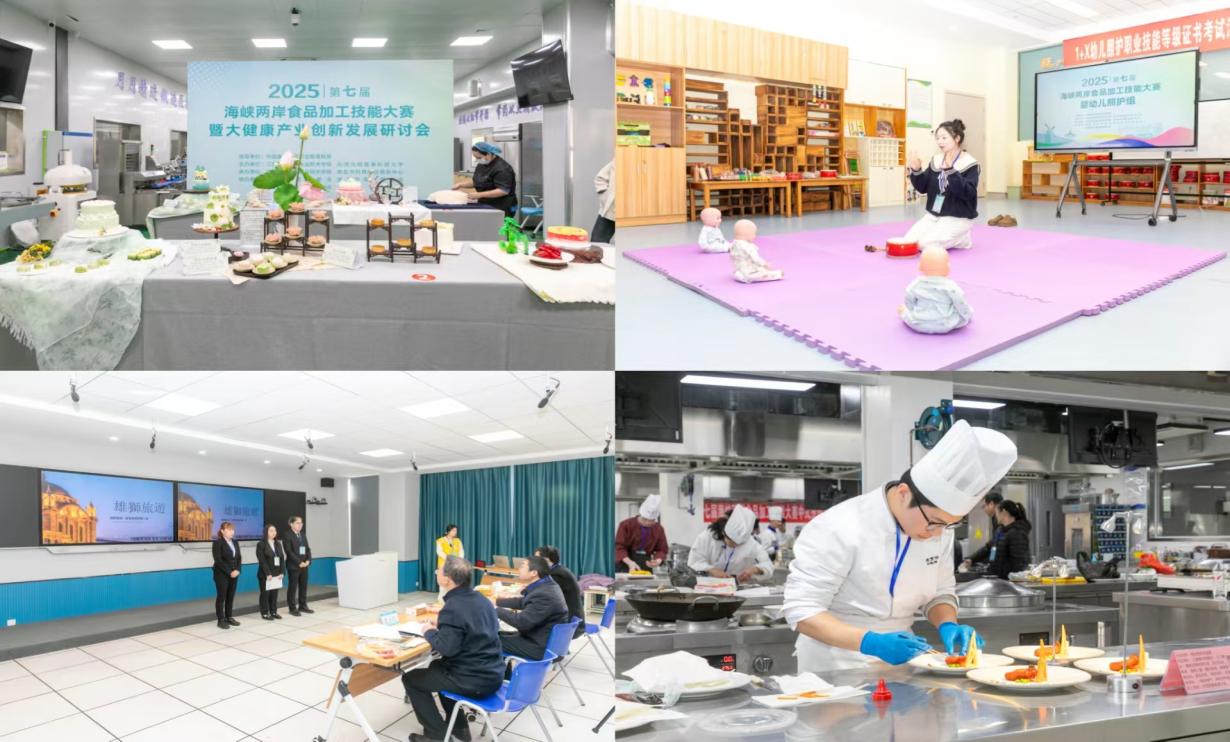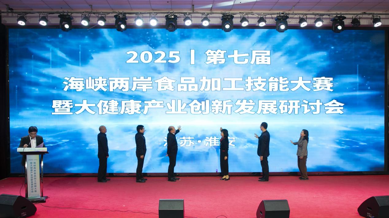 11月26日至11月28日,2025第七届海峡两岸食品加工技能大赛在我校举行。江苏省台办三级调研员吴长征、我校校长安进、淮安市侨办主任蔡昀、淮安市台办副主任徐宜祥、台湾高雄科技大学教授黄世钰、民革淮安市委会副主委董进出席开幕式,开幕式由我校副校长焦宇知主持。本次大赛汇聚了来自大陆和台湾地区的13所院校120名优秀选手,围绕“糕点制作”“中式烹饪”“营销创意”“健康照护”四个赛项,以“团圆”“融和”“老味道,新传承”“幼有所育、幼有善育”为主题展开技能交流与角逐。