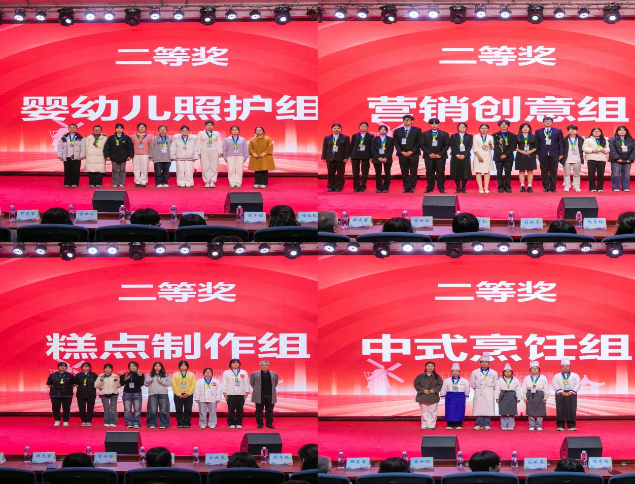 开幕式后,比赛正式拉开帷幕。选手们在糕点制作、中式烹饪、营销创意和婴幼儿照护领域展现了令人瞩目的创意与技艺。无论是创意十足的营销策划方案、精巧别致的糕点、色香味俱全的中式菜肴还是细致专业的婴幼儿照护技能,都展现了选手们的拿手绝活,为观众呈现了一场精湛的技艺盛宴。