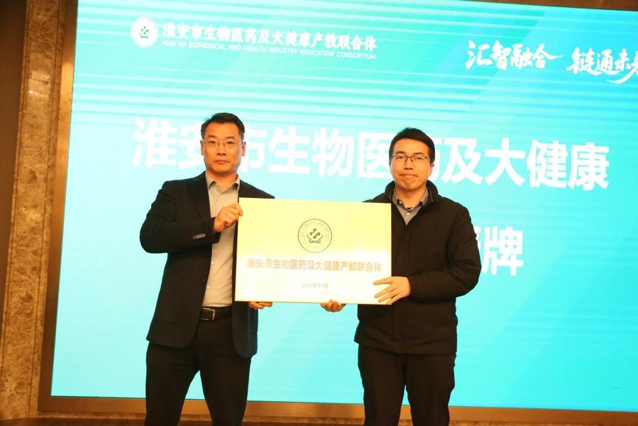 11月28日下午,淮安市生物医药及大健康产教联合体成立大会顺利召开。本次大会以“汇智融合,链通未来”为主题,由江苏淮安清江浦区经济开发区管理委员会、江苏正大清江制药有限公司、江苏天士力帝益药业有限公司及我校共同牵头,汇聚政府部门、高等院校、医疗机构、科研院所及医药产业链上下游企业等多方力量,来自45家成员单位的80余位代表齐聚一堂,共赴行业盛会。联合体的成立,搭建起淮安市生物医药及大健康产业人才培养、技术创新、资源共享的合作平台,也标志着我市在深化产教融合、服务“7+3”先进制造业集群高质量发展进程中迈出了关键一步。