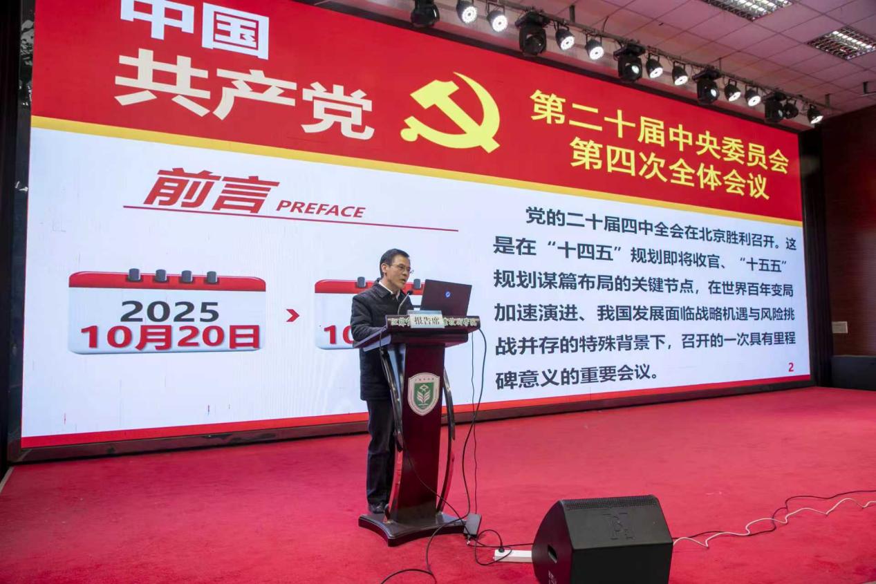 赵慧围绕“党的二十届四中全会内涵是什么”“习近平总书记为何如此重视‘十五五’规划编制”“‘十四五’我们交出了怎样的答卷”“党的二十届四中全会擘画了怎样的未来蓝图”以及“我们以后怎么做”五个核心问题,对党的二十届四中全会精神进行了全面而深入的解读。他还结合学校工作实际,对贯彻落实党的二十届四中全会精神提出了具体建议。