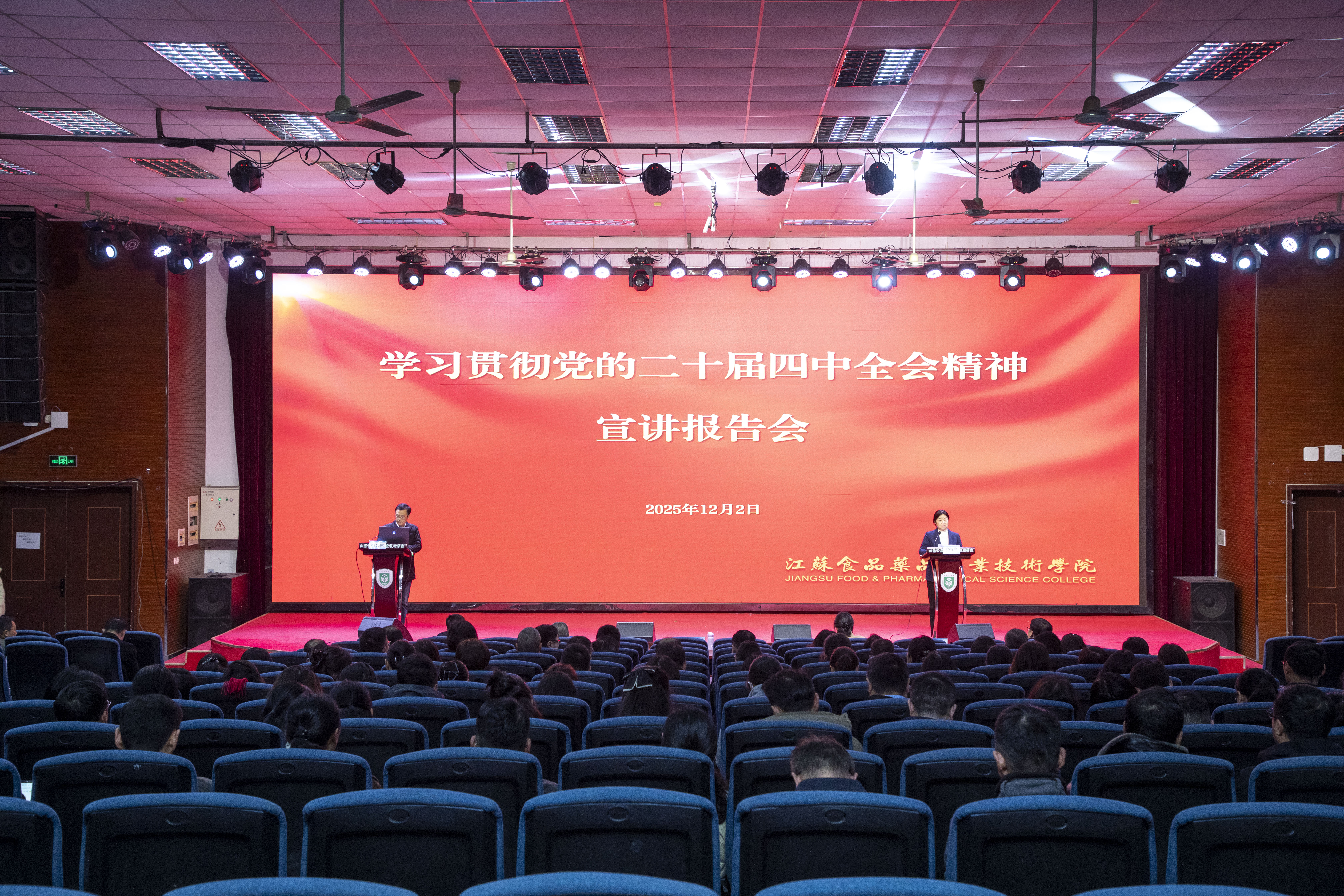 12月2日下午,我校在教学楼C115举办“学习贯彻党的二十届四中全会精神”宣讲报告会。报告会由学校党委书记翟玮玮主持,淮安市委宣讲团成员、学校马克思主义学院院长赵慧担任主讲人。在淮校领导、副科职以上干部、思政课教师、辅导员参加报告会。