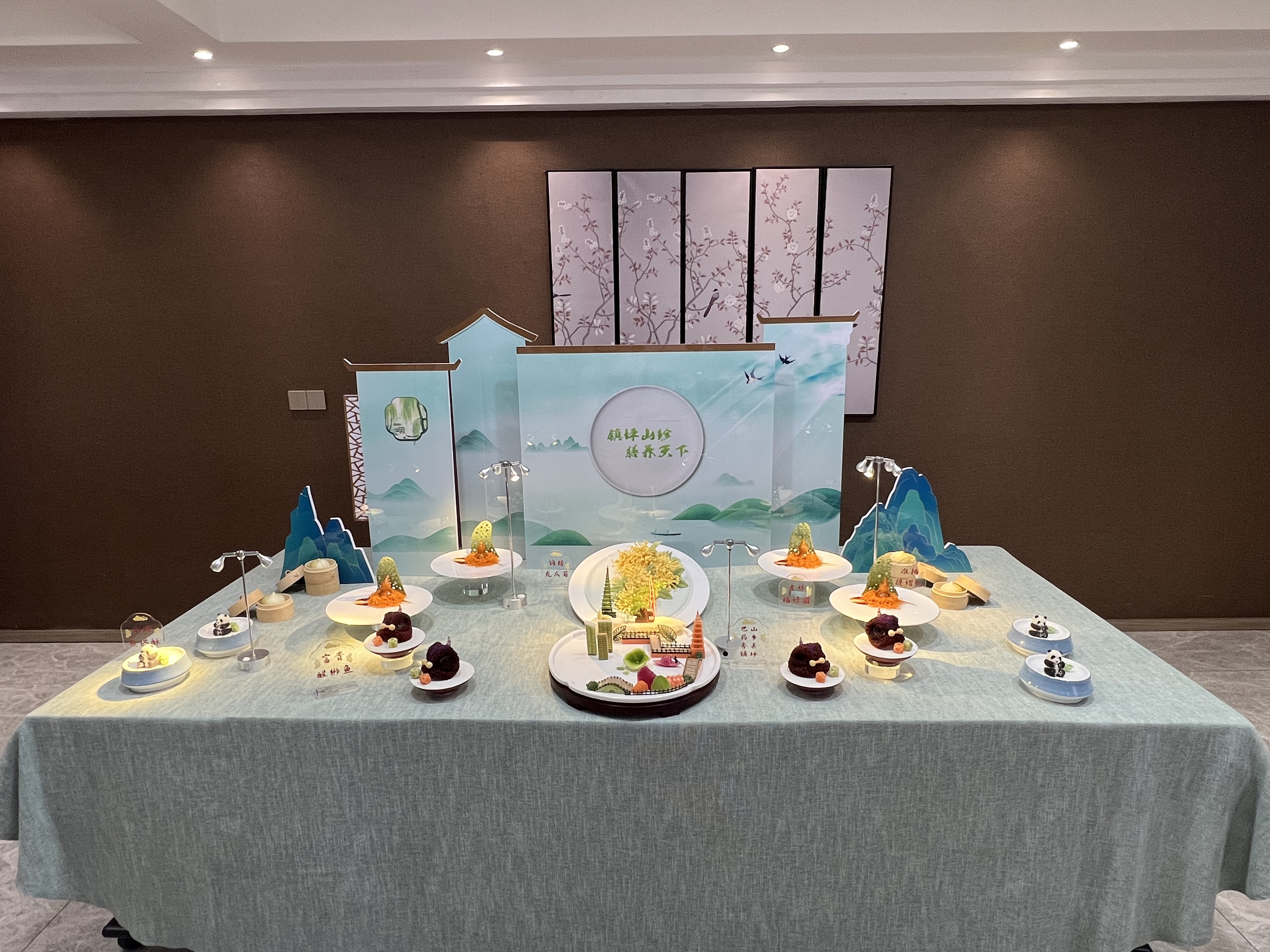酒店学院师生团队将淮扬菜精致技艺与镇坪特色物产、人文风貌及自然景观深度融合,成功设计并呈现“镇坪山珍·膳养天下”主题宴席展台。宴席菜品充分彰显秦巴地区饮食文化特色,“秦岭熊猫酥”“曾家金丝龙爪菊”“秀美镇坪花色冷拼”等作品造型生动、意蕴丰富,赢得现场高度关注。团队依托当地优质食材资源,精选天麻、洋芋、柴葛、腊肉等镇坪特产,创新研发出10道兼具地方风味与养生理念的特色菜肴。宴席成果在品鉴活动中获得镇坪各界人士的一致好评,展现了饮食文化融合的创新活力与实用价值。