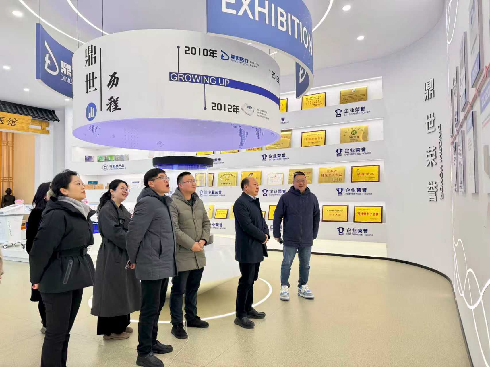 安进一行首站抵达位于江北新区小柳工业园区的鼎世医疗。在企业负责人陪同下,大家深入了解了智慧医疗装备、数字化健康管理平台等在实际场景中的应用情况。随后,参观托育嵌入式综合服务项目。该项目以“一老一小”协同服务为特色,调研团详细询问了服务模式、运营管理及人员配置情况,并就社区健康服务人才培养、学生社区实践等议题与运营方交流意见。