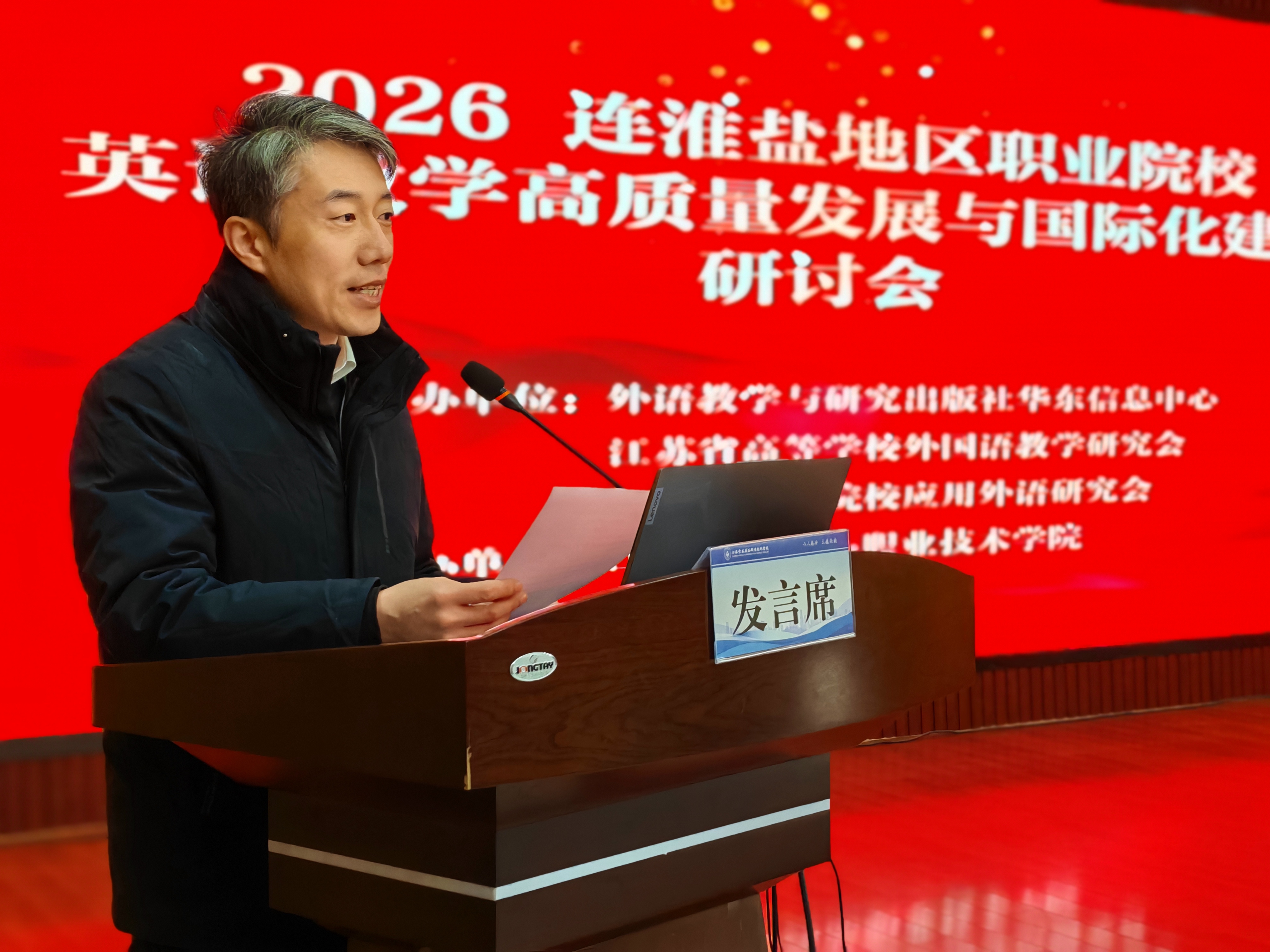 1月23日上午,由外语教学与研究出版社华东信息中心、江苏省高等学校外国语教学研究会、江苏省职业院校应用外语研究会联合主办,我校承办的“连淮盐地区职业院校英语教学高质量发展与国际化建设研讨会”在第四会议室召开。我校副校长贾韶千出席会议并致辞。