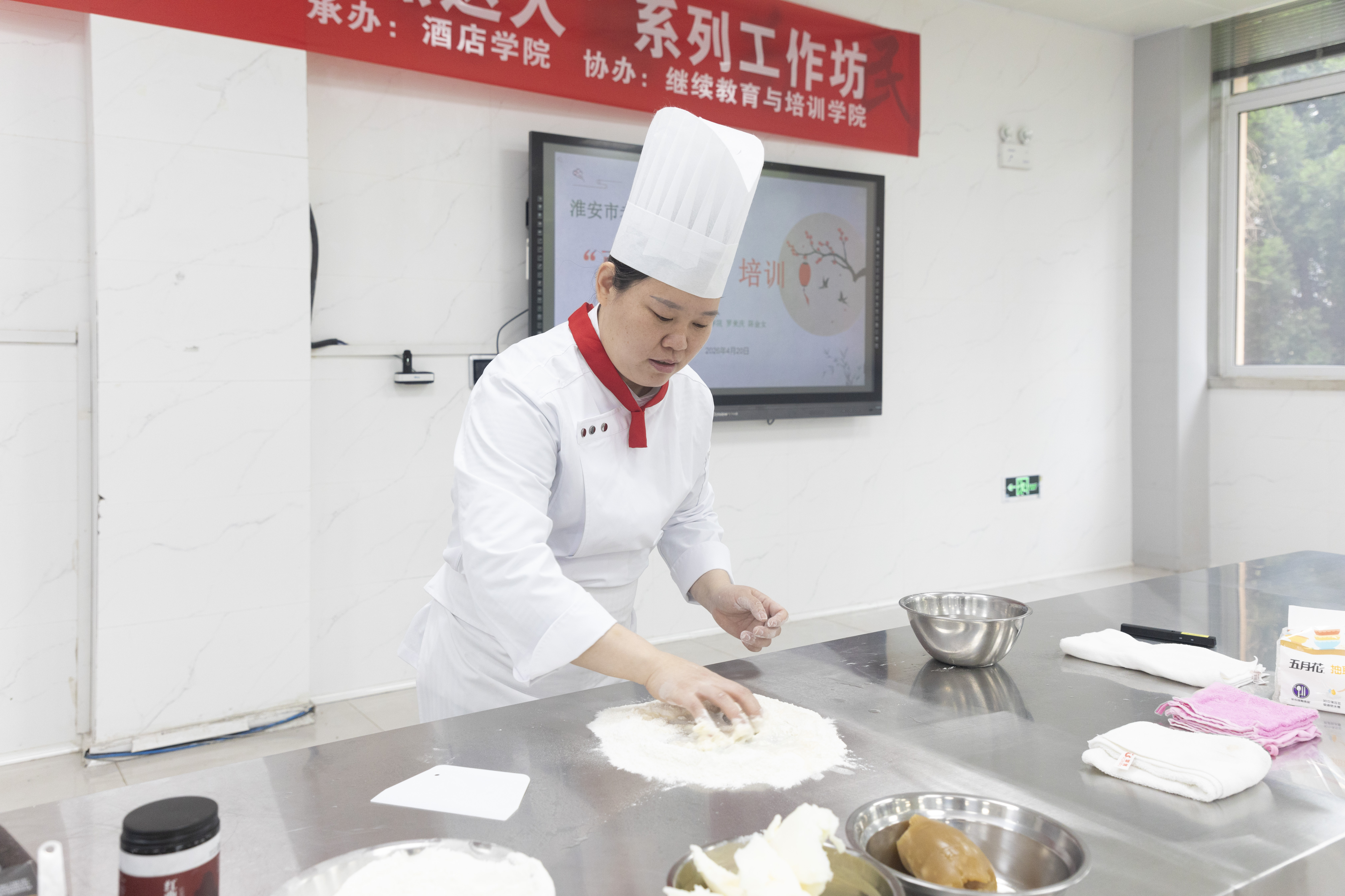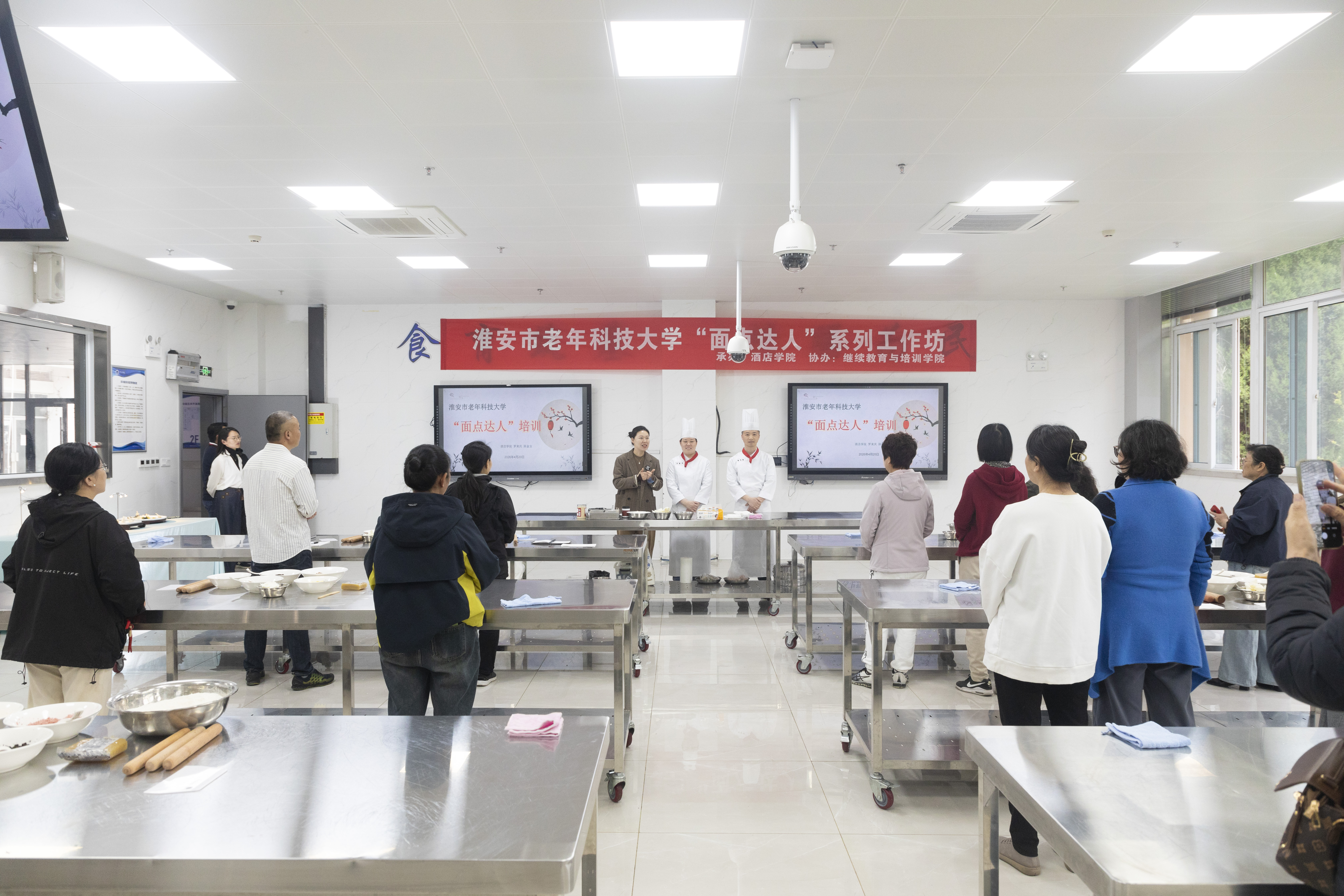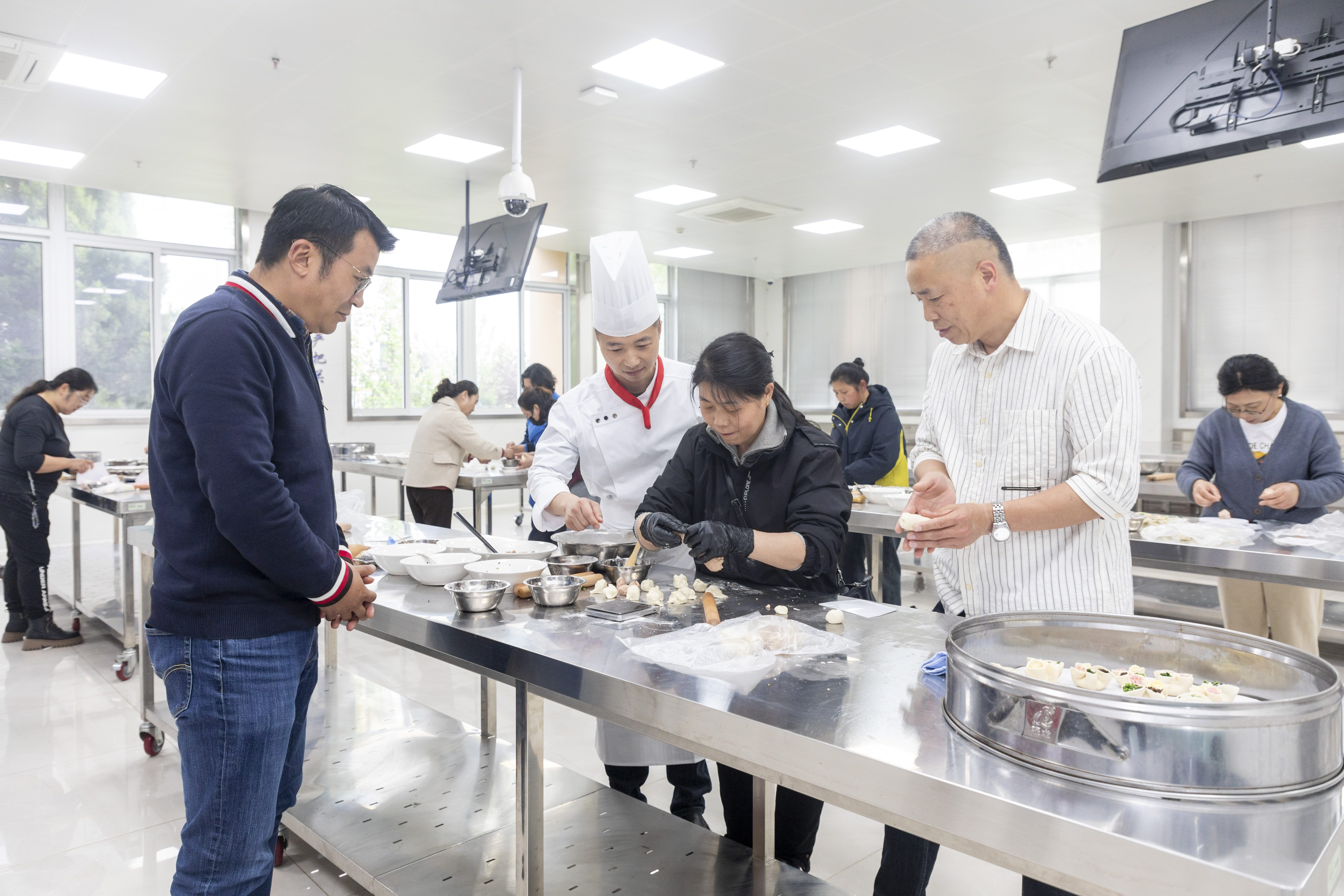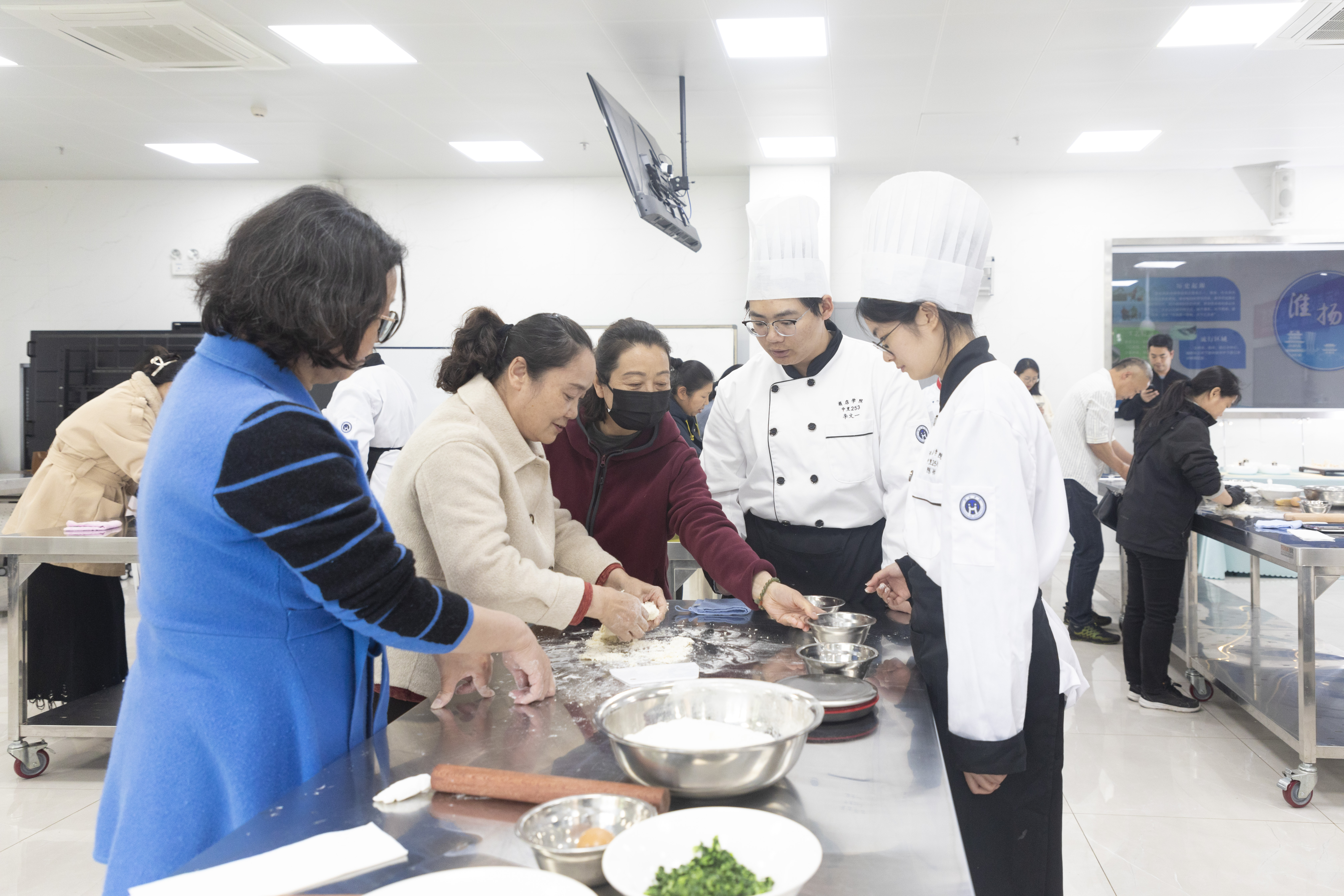 淮安市老年科技大学由江苏食品药品职业技术学院建设,是学校践行“大健康”理念、推进“一老一小”服务高质量发展的重要举措。4月20日下午,首期“面点达人”中式面点体验课在酒店学院烹饪综合实训中心温情开课,校党委书记翟玮玮高度重视并亲临现场指导。本次活动由淮安市老年科技大学主办,酒店学院承办,继续教育与培训学院协办。