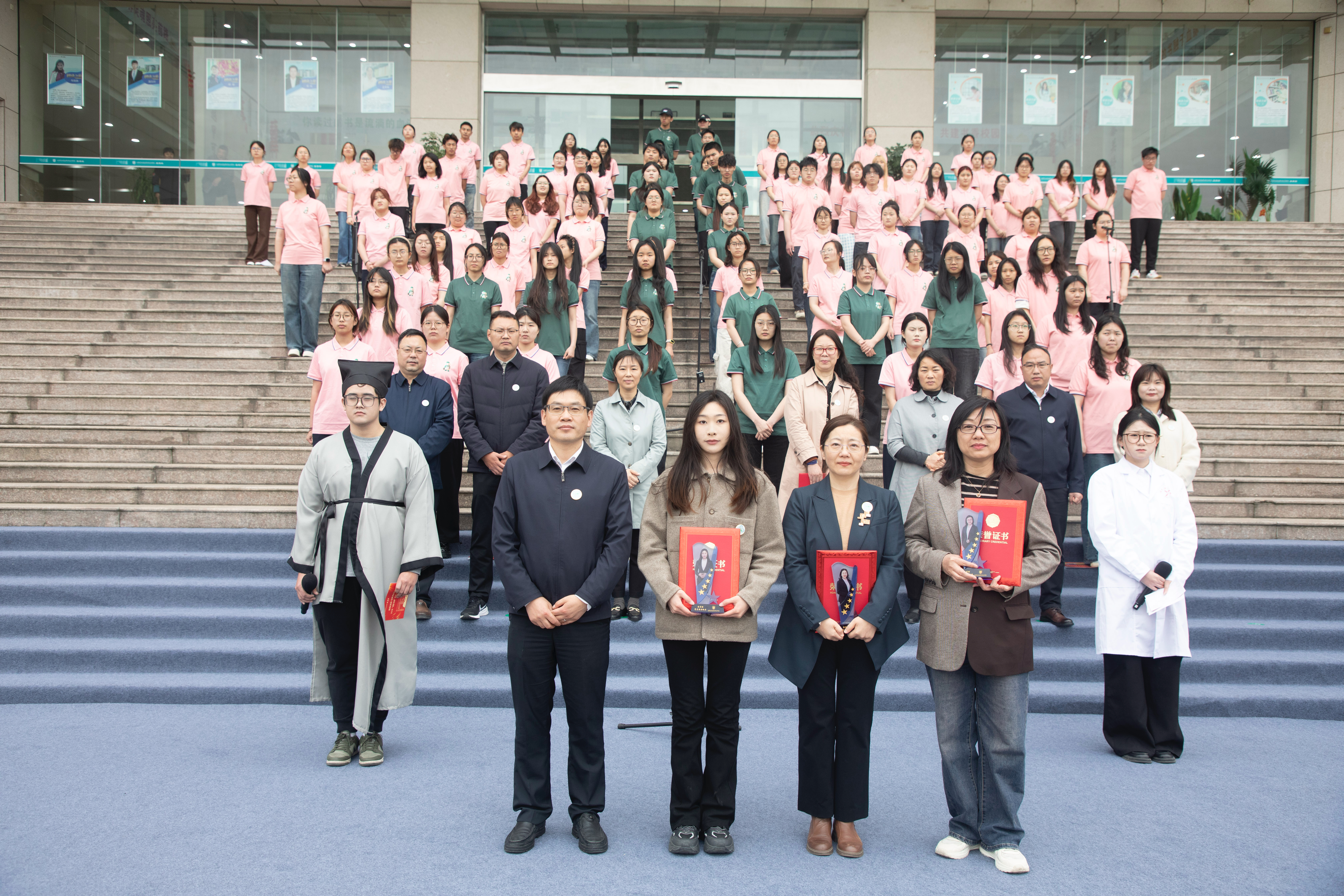 为深入贯彻《全民阅读促进条例》,推进阅读推广工作,本届读书节首次设立杨倩倩、晁溪两位“阅读推广形象大使”。会上宣读了2025年“阅读之星”名单,教师代表孟秀梅、学生代表晁溪分别分享了阅读心得。活动表彰了图书馆“五心”党员服务标兵王咏梅、戴彦、许晗悦三位同志,焦宇知为她们颁发证书和奖杯,充分肯定了图书馆党员队伍在提升服务质量、创新服务模式方面取得的显著成效,彰显了党建引领业务发展的工作理念。