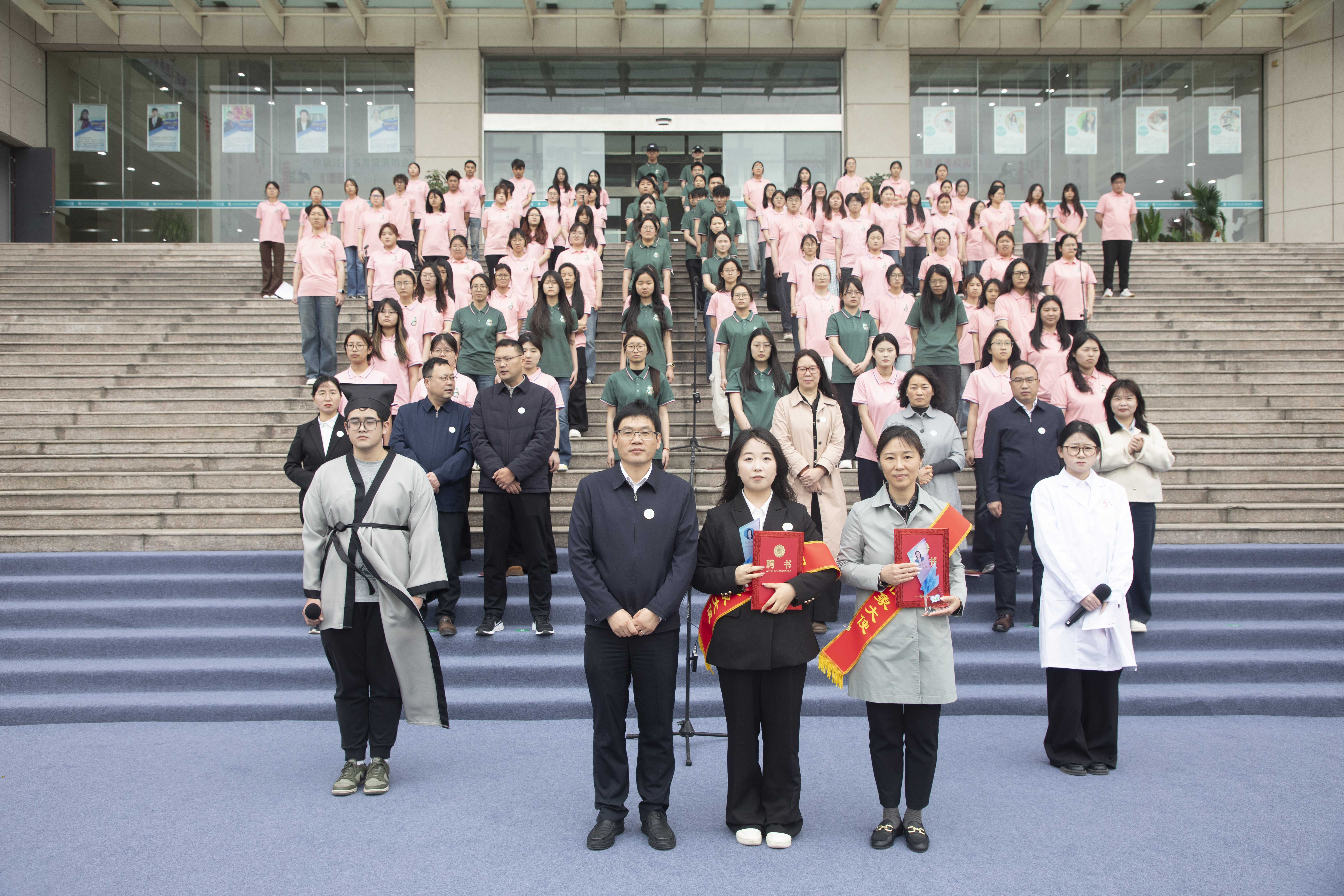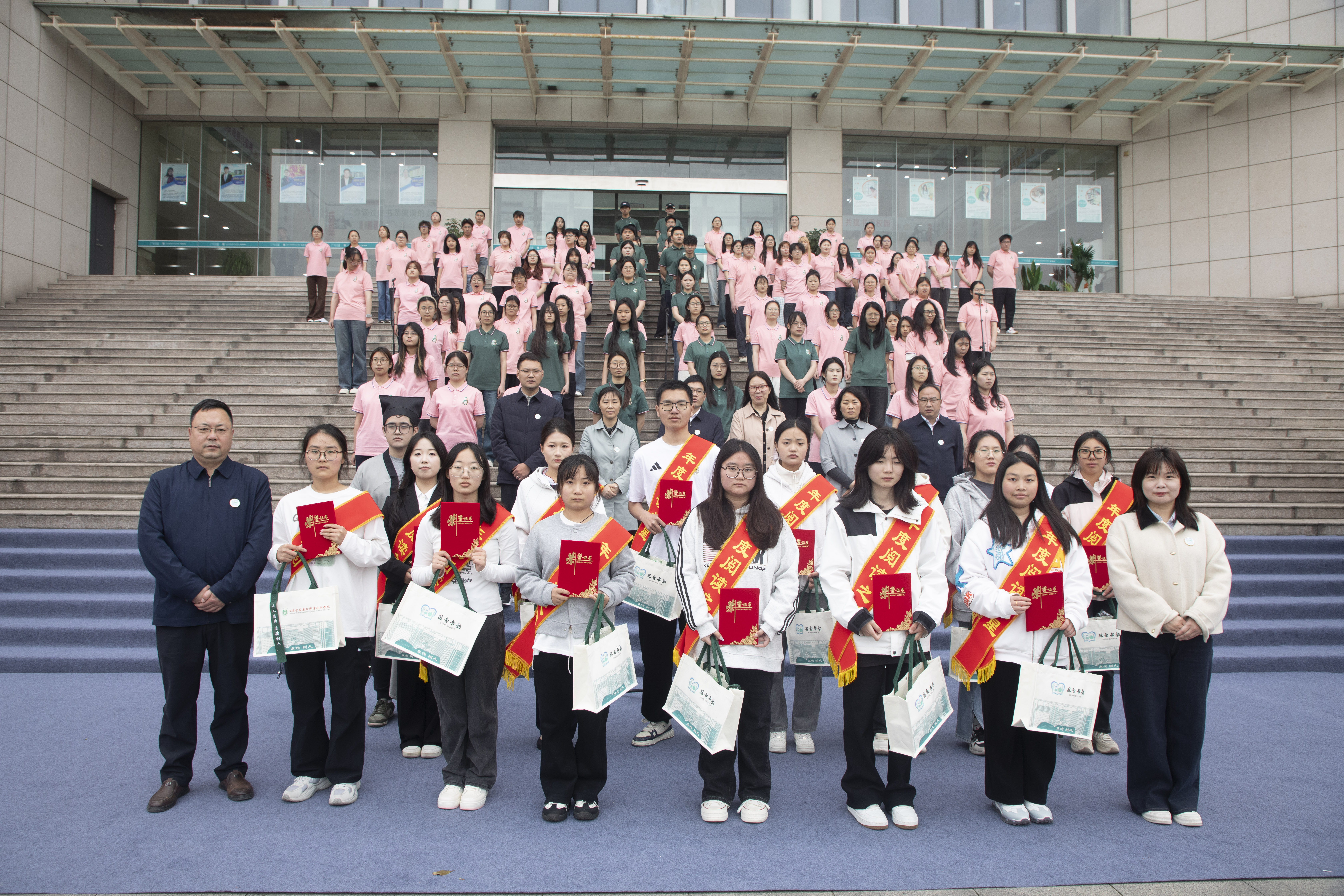 副校长焦宇知为“阅读推广形象大使”杨倩倩、晁溪颁奖