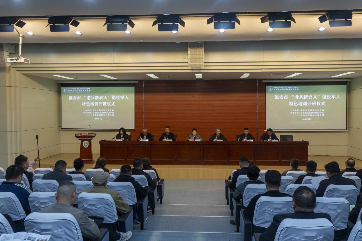 4月24日上午,2026年淮安市第五期“老兵新农人”退役军人特色培训班开班仪式在我校举行。本次培训由淮安市退役军人事务局主办,江苏食品药品职业技术学院与金湖县退役军人事务局共同承办。副校长贾韶千出席并致辞,市退役军人事务局党组书记、局长杨冬梅出席并讲话。开班仪式由继续教育与培训学院院长于溥春主持。